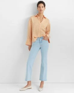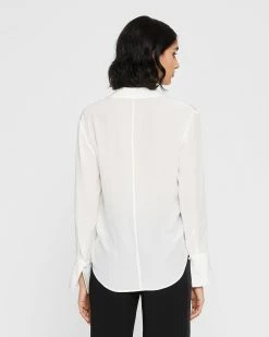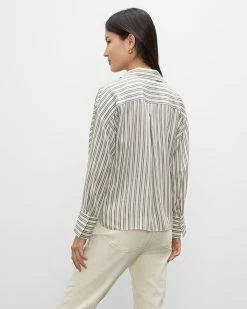 Best deal π― Club Monaco π© Women Signature Striped Silk π Shirt White Printed Multi π₯°