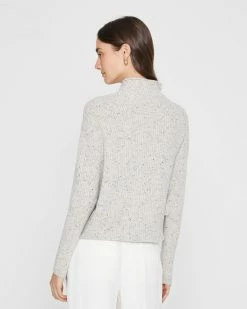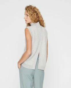 Best Pirce ๐ Club Monaco ๐ฉ Women Silk Cashmere Sleeveless Mock Neck Sweater Grey Multi ๐