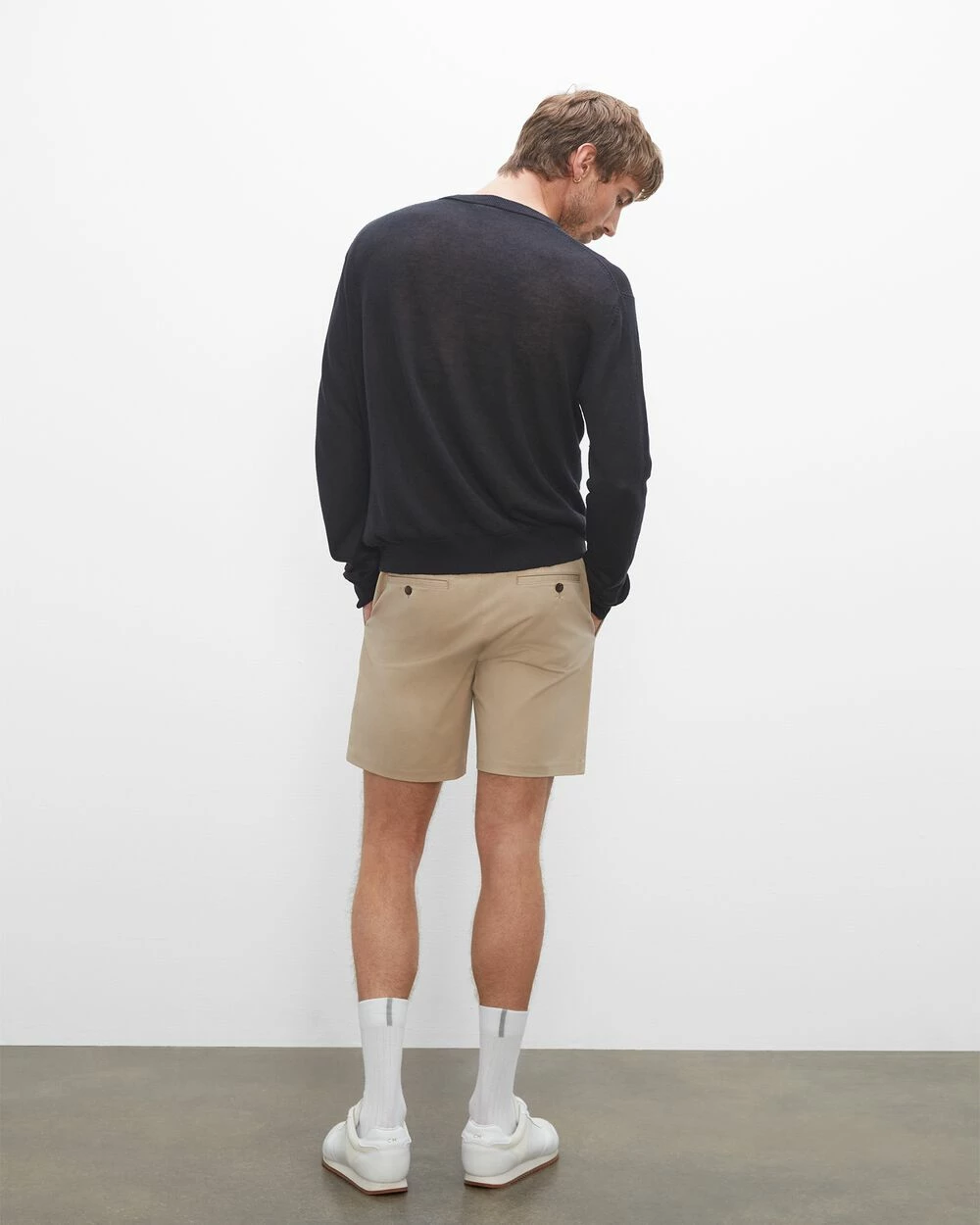 A tailored approach to warmer weather. One of our three essential fits, here in a solid stretch cotton for a versatile comfort. Slim and polished with a 7-inch inseam.