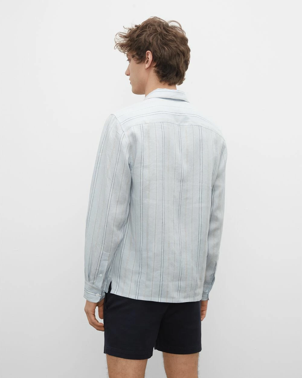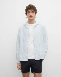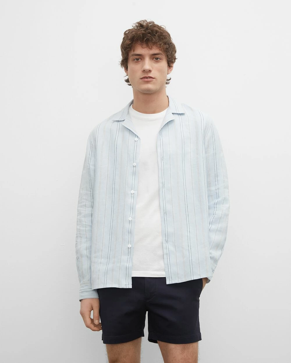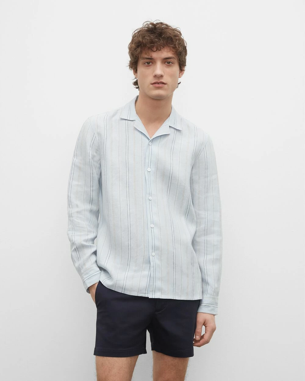 Pared back but polished. A camp collar gives the button-down shirt a casual, versatile feel. Made from a striped lightweight linen and cut for a slim fit.