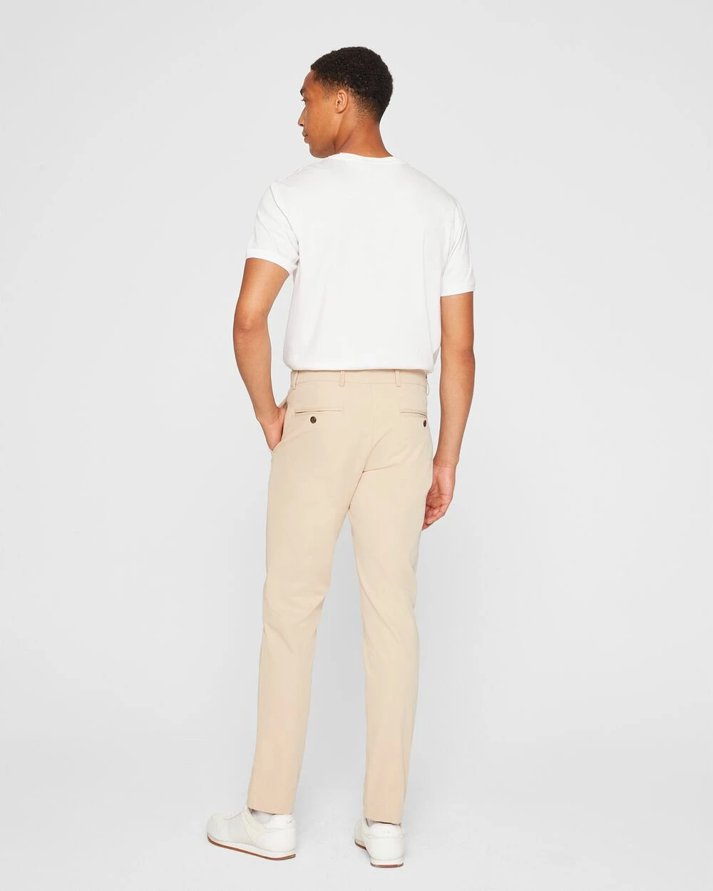 A modern take on the essential chino pants. Tailored for a meticulous slim fit in a crisp, mid-weight tech cotton with four-way stretch. Wear it year-round.