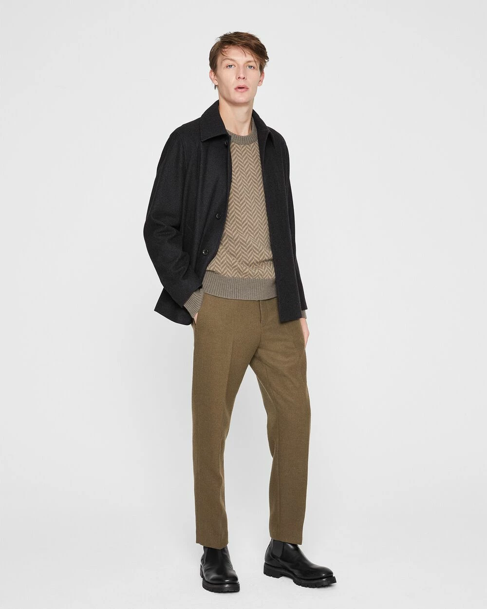 This classic crewneck sweater is a warm welcome for the cooler months with its bold herringbone-knit blend of wool and alpaca hair.