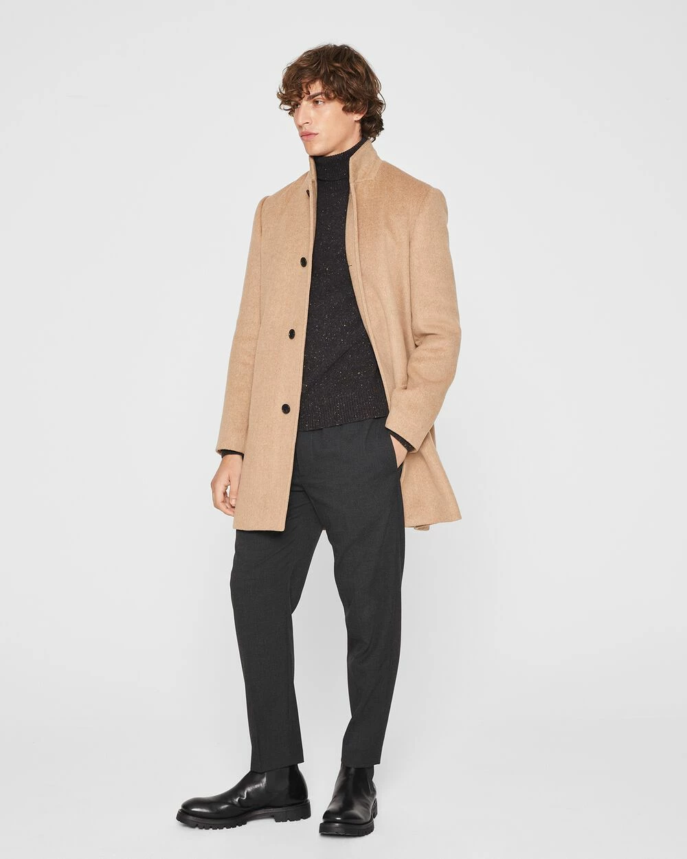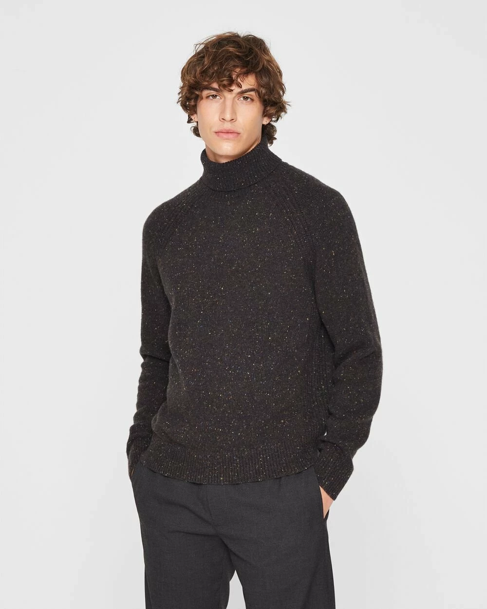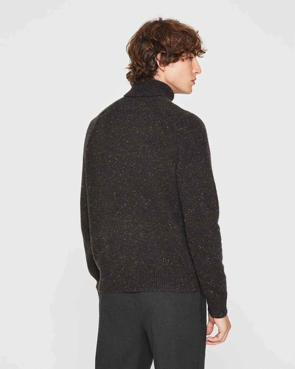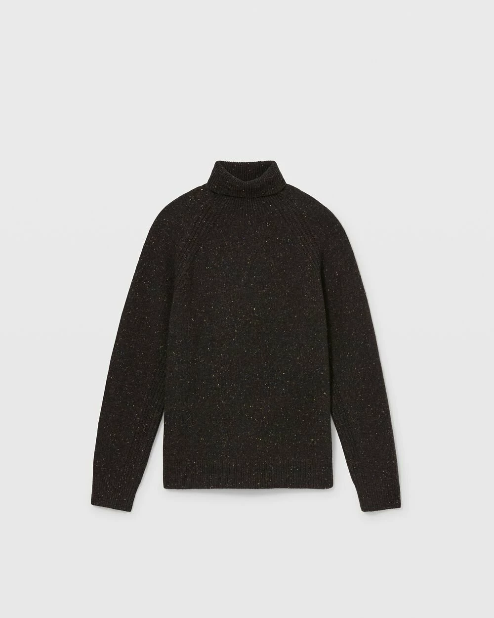 Multicolored flecks create a cool Donegal effect on the essential turtleneck sweater. Made from a cool tech wool for refined warmth and dynamic texture.