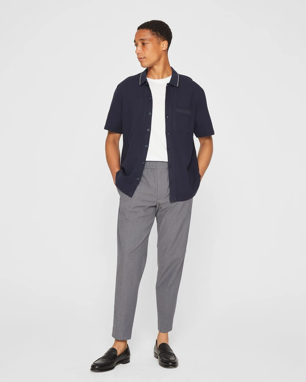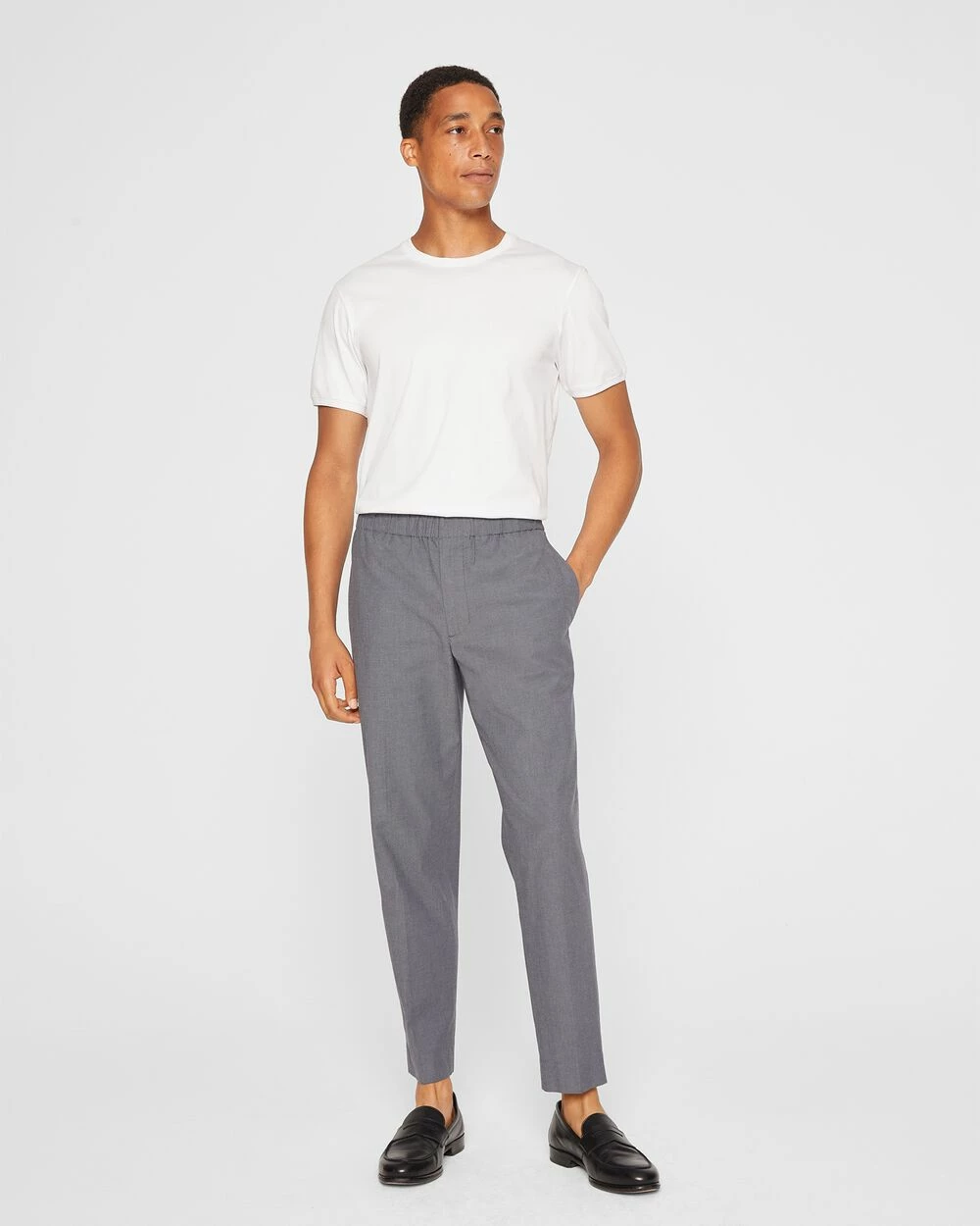 The weekender. A casual-cool pair of slim trousers makes off days that much nicer. Ours is crafted from a dobby-weave stretch cotton with an elasticized waistband for a comfortable fit that still manages to stay polished.