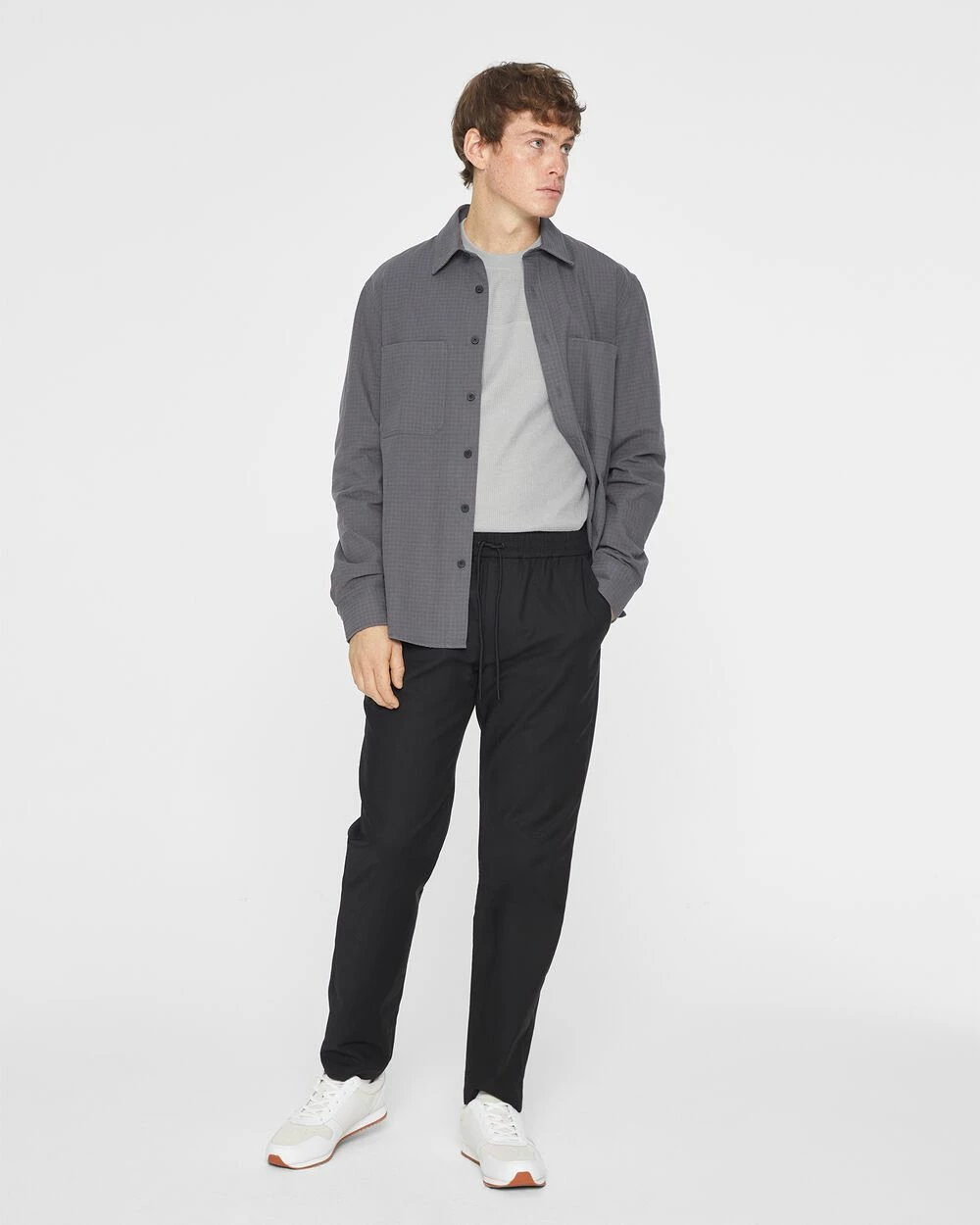 The standard crewneck sweater updated with the visual interest of a French rib-knit stretch cotton for a little more distinction.