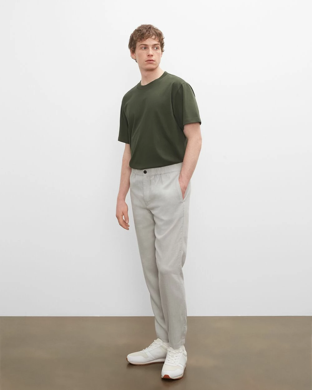 Relaxed, refined. Elastic details at the waist and cuffs lend a little bit of ease to the tailored trouser. In a laid-back, stretch-linen blend.