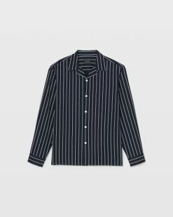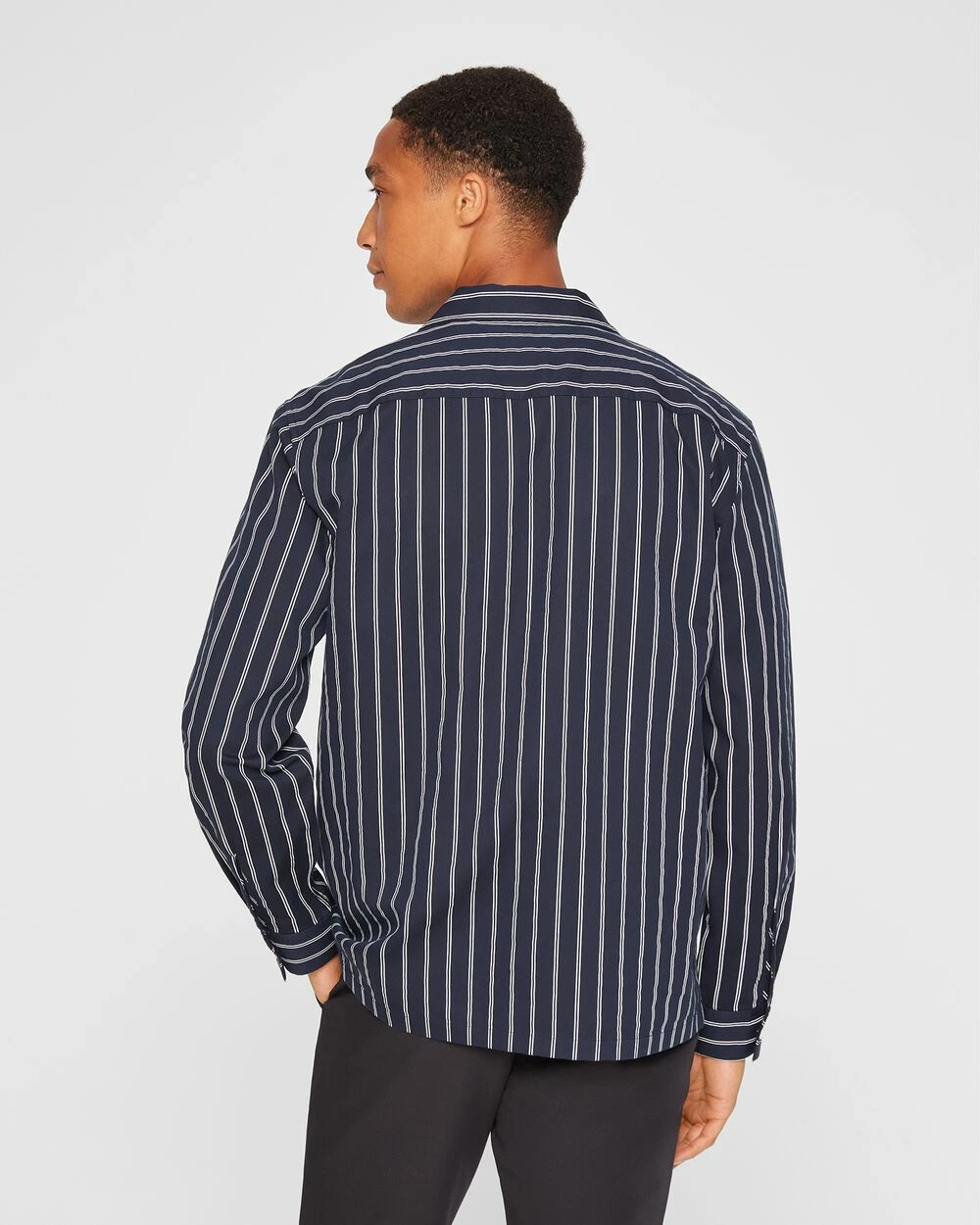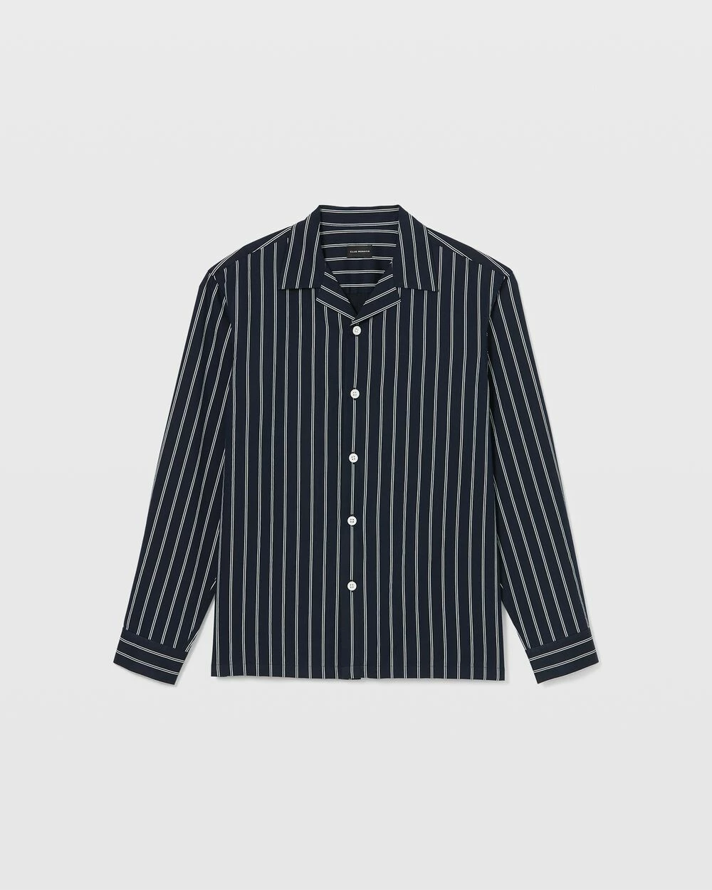 - Camp collar; long sleeves with single-button barrel cuffs; back shoulder yoke; straight hem