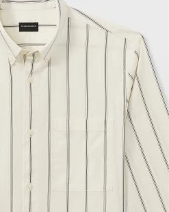 Look sharp. A streamlined button-down in our new standard fit for maximum comfort without sacrificing style. In a crisp, pinstriped cotton poplin for a soft feel.