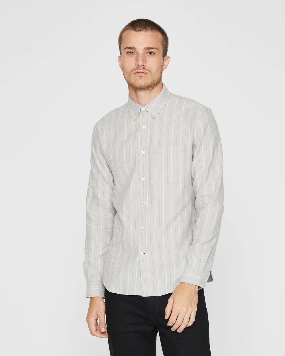 A midweight flannel. Our signature slim shirting updated in a soft, brushed, medium-weight flannel for versatile layering. In an alternating stripe pattern.