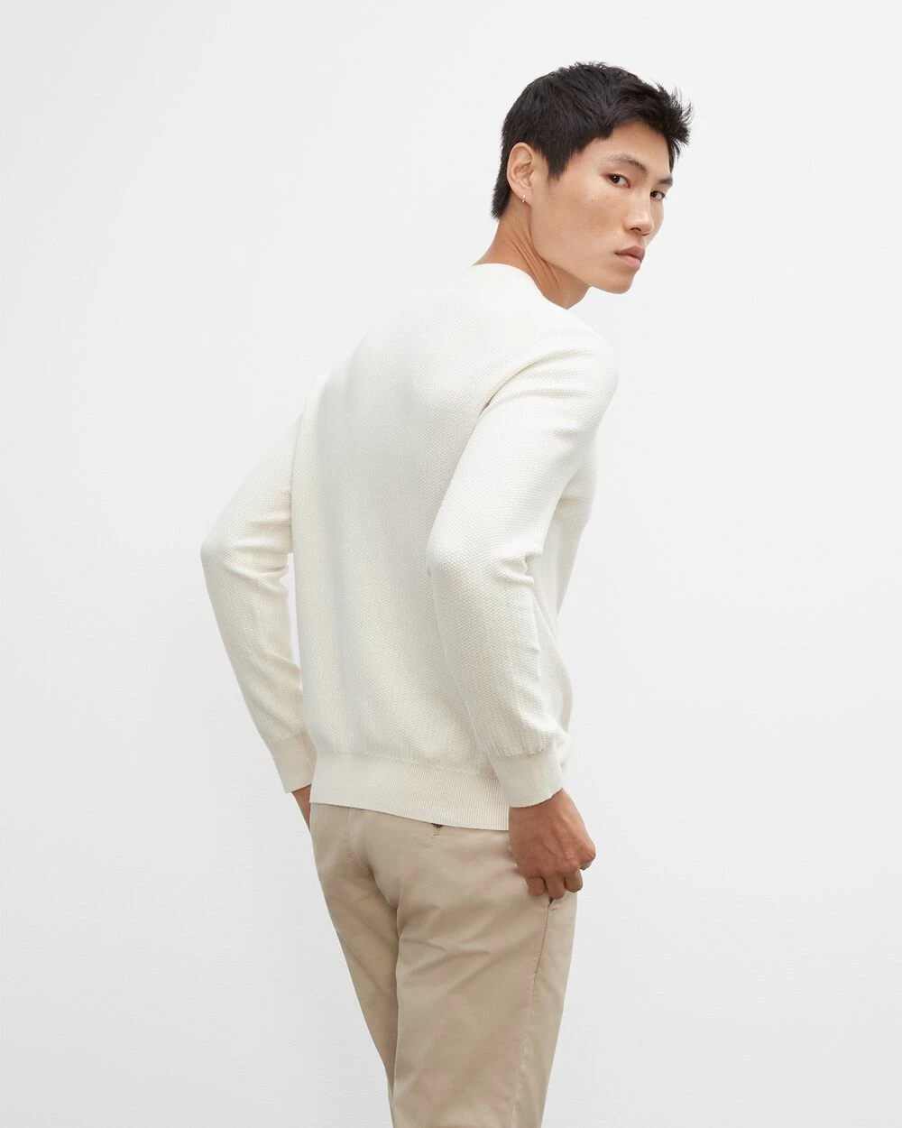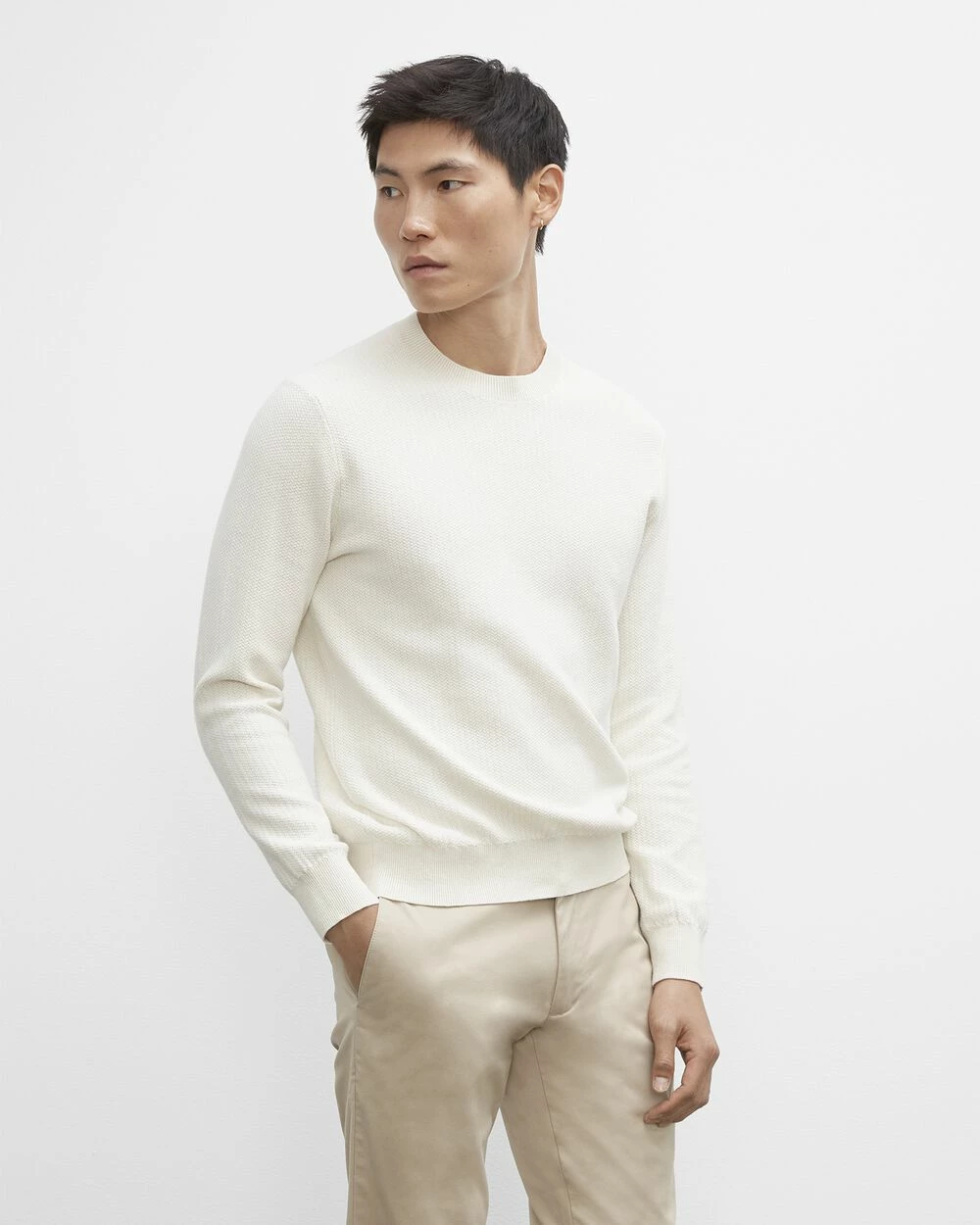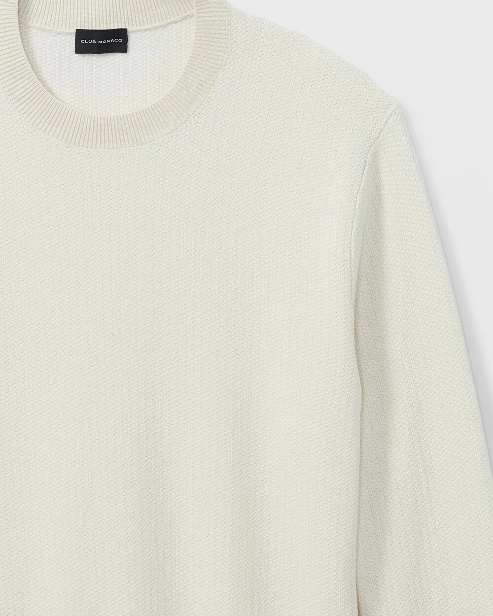 Neutral knit. This clean, crochet-inspired crewneck sweater combines the comfort of a casual sweater with the refined look of a nuanced knit for the perfect middle ground. By buying cotton products from us, you’re supporting more sustainable cotton farming. Learn more at bettercotton.org/learnmore