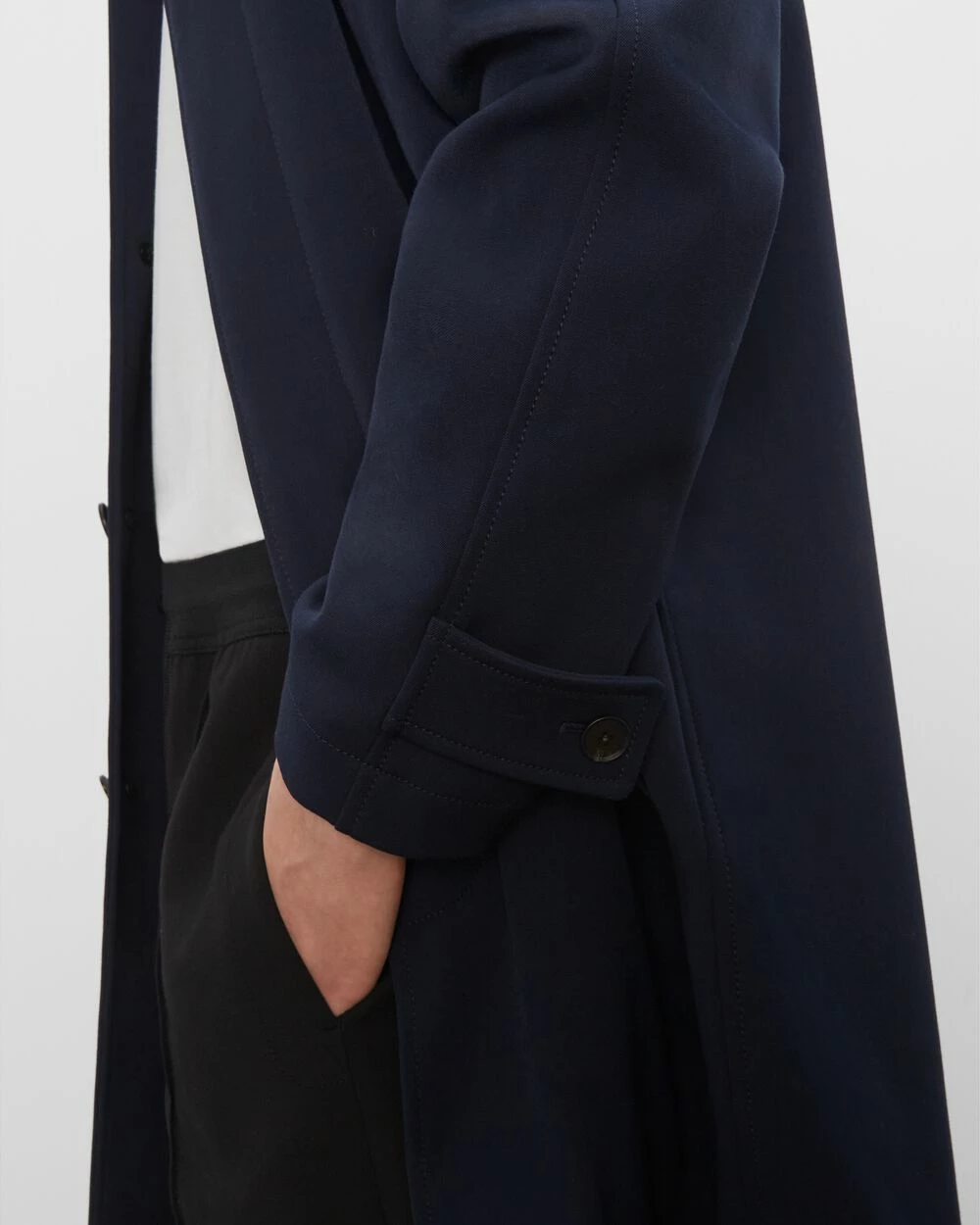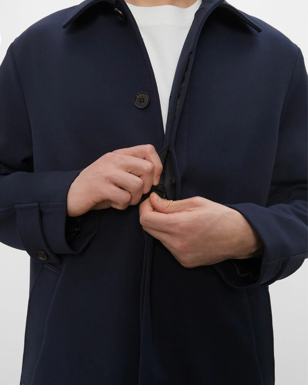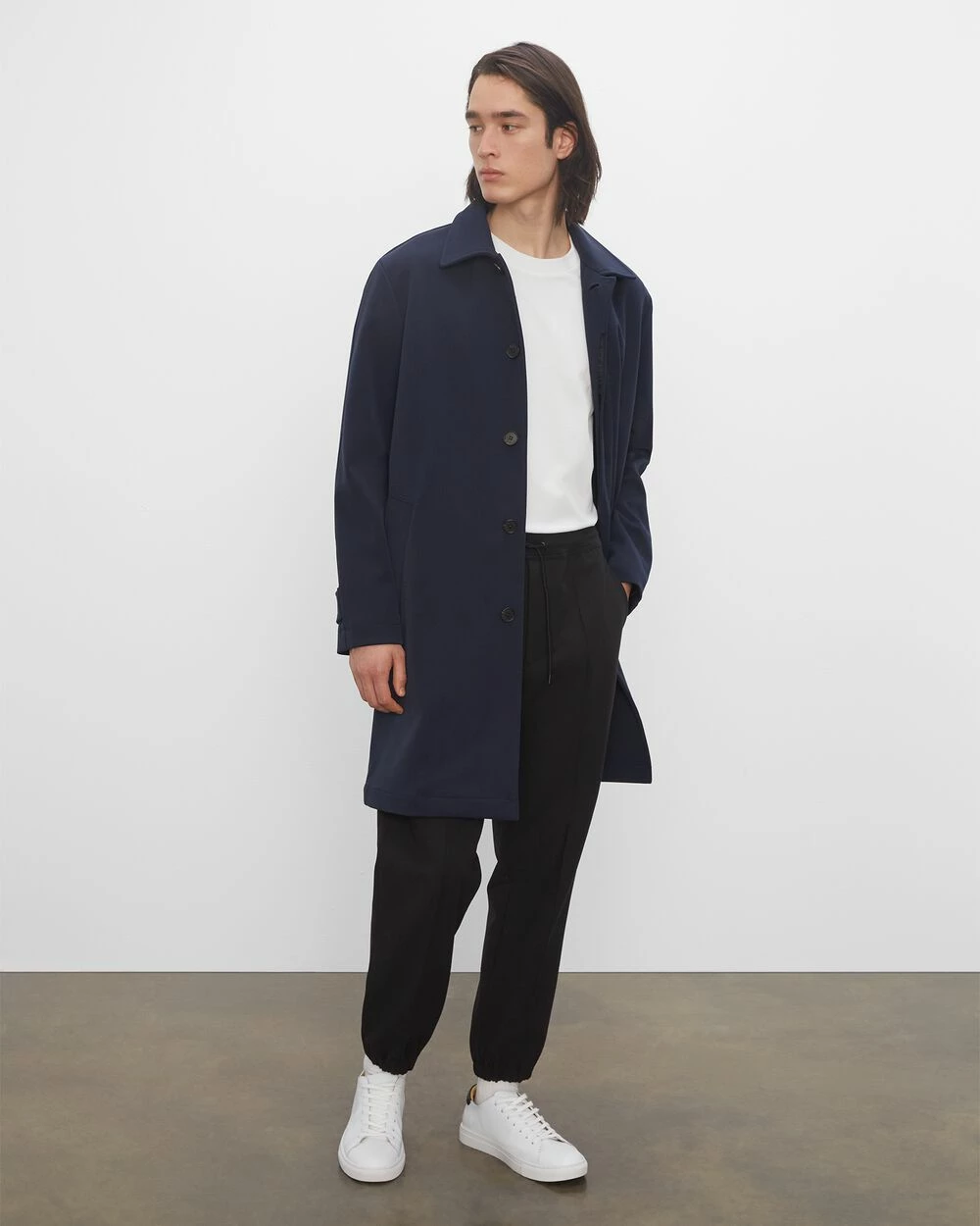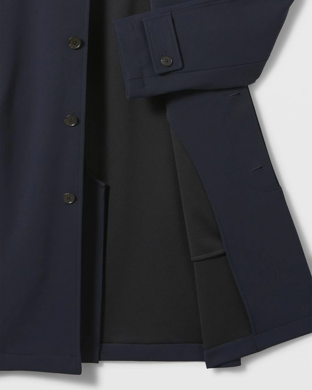 Return of the mac. The timeless silhouette you know and love gets an updated fabrication that carries you from fall to the early days of winter. Our mac coat is soft, slightly stretchy, and streamlinedβthe perfect top layer.