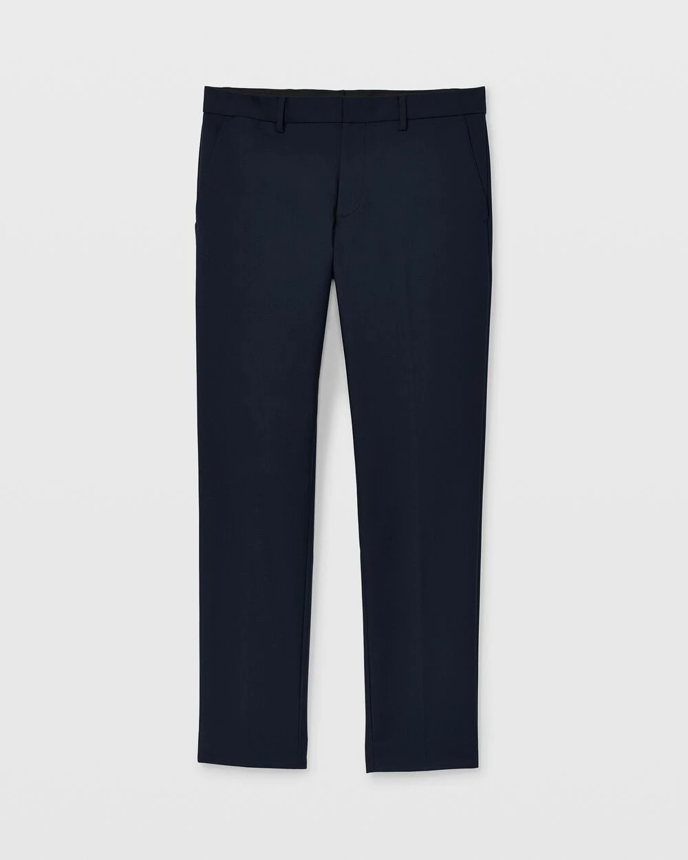 The dress trouser, updated. Cut slim in a cool cotton fabric with comfortable stretch. A sleek essential to wear at work and after hours too.