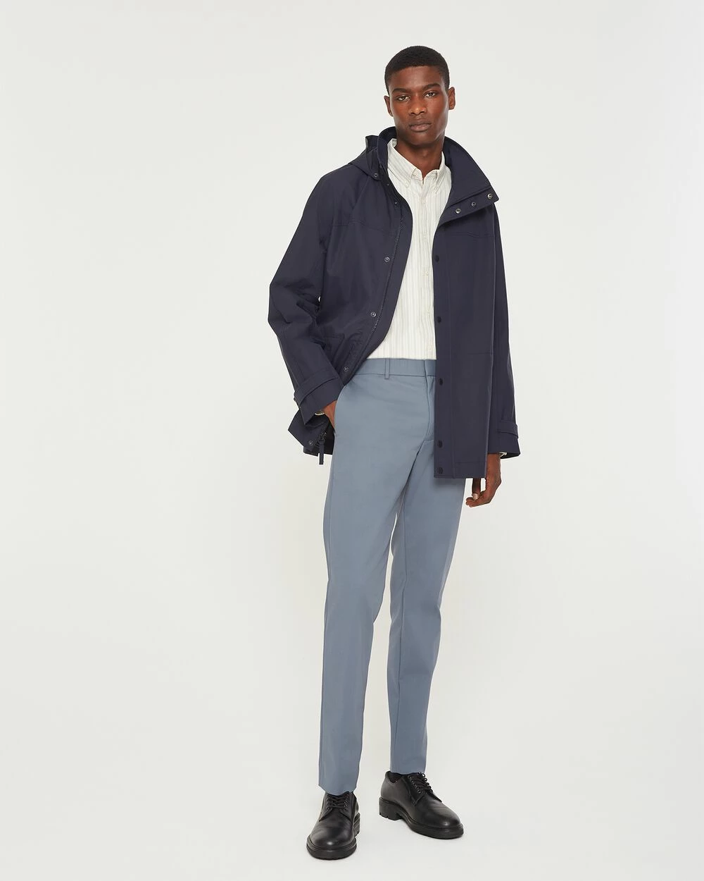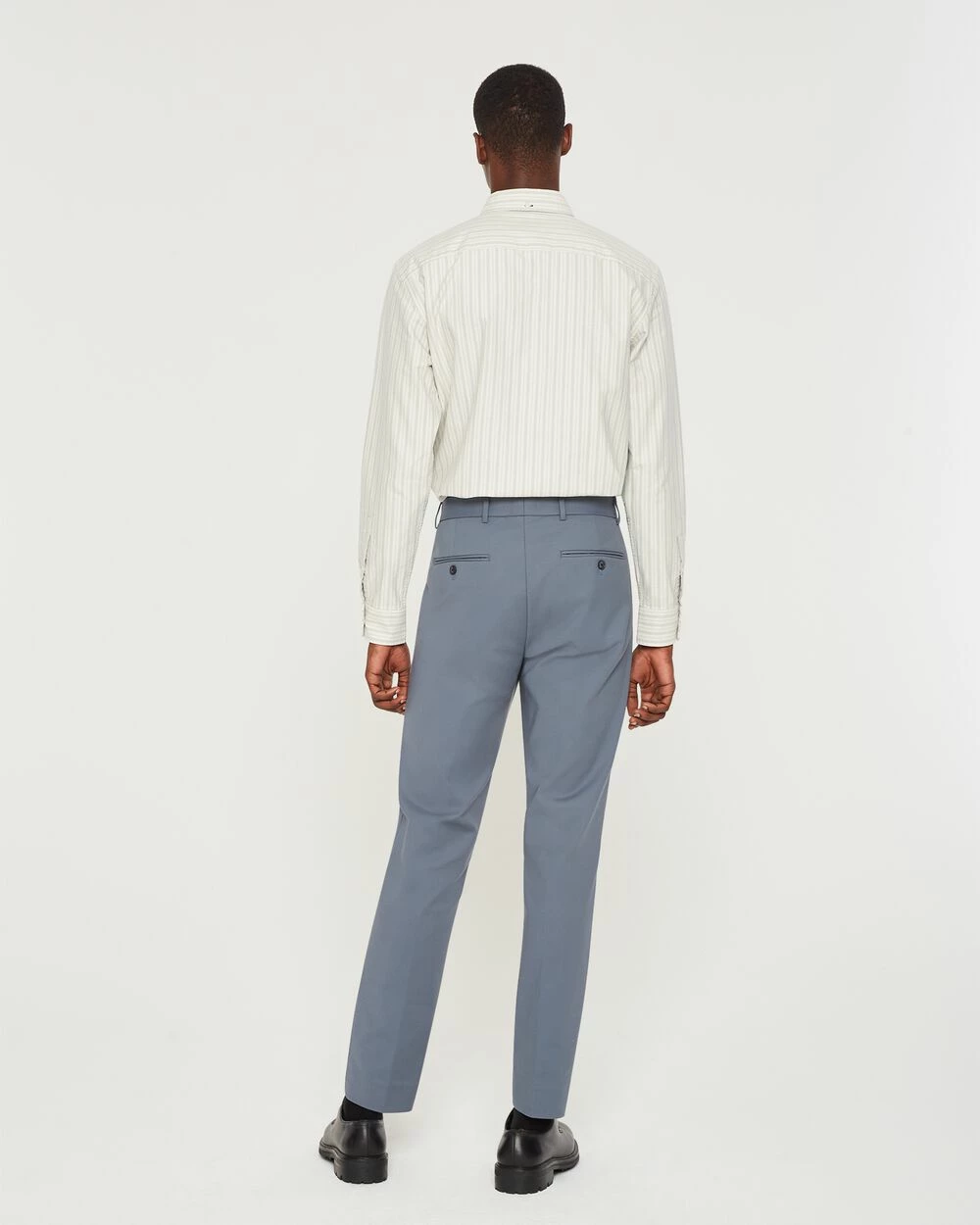 The dress trouser, updated. Cut slim in a cool cotton fabric with comfortable stretch. A sleek essential to wear at work and after hours too.