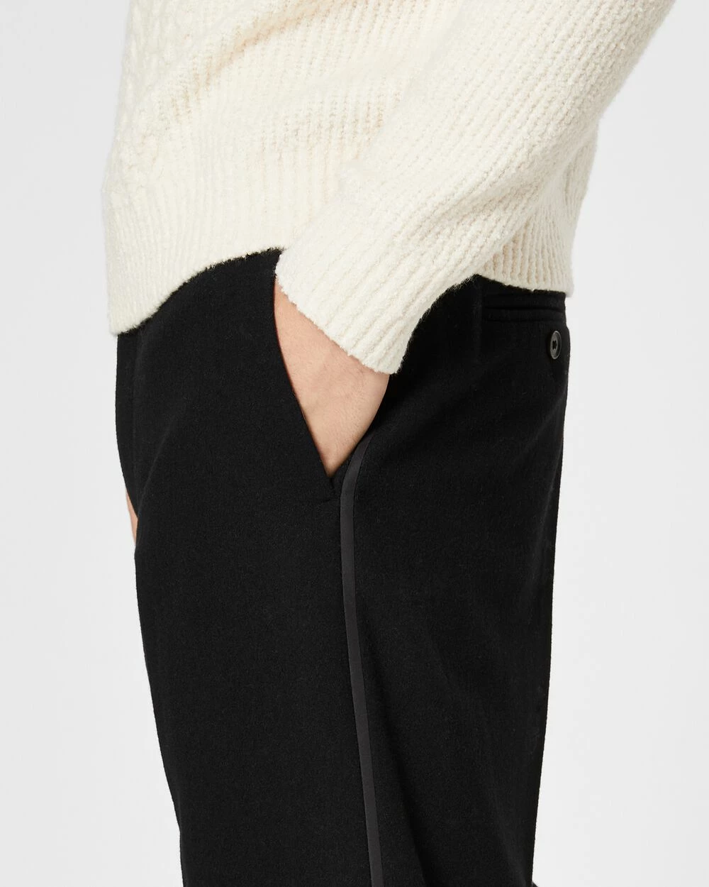 - Zip fly with button closure