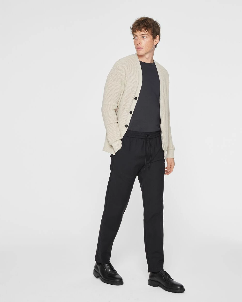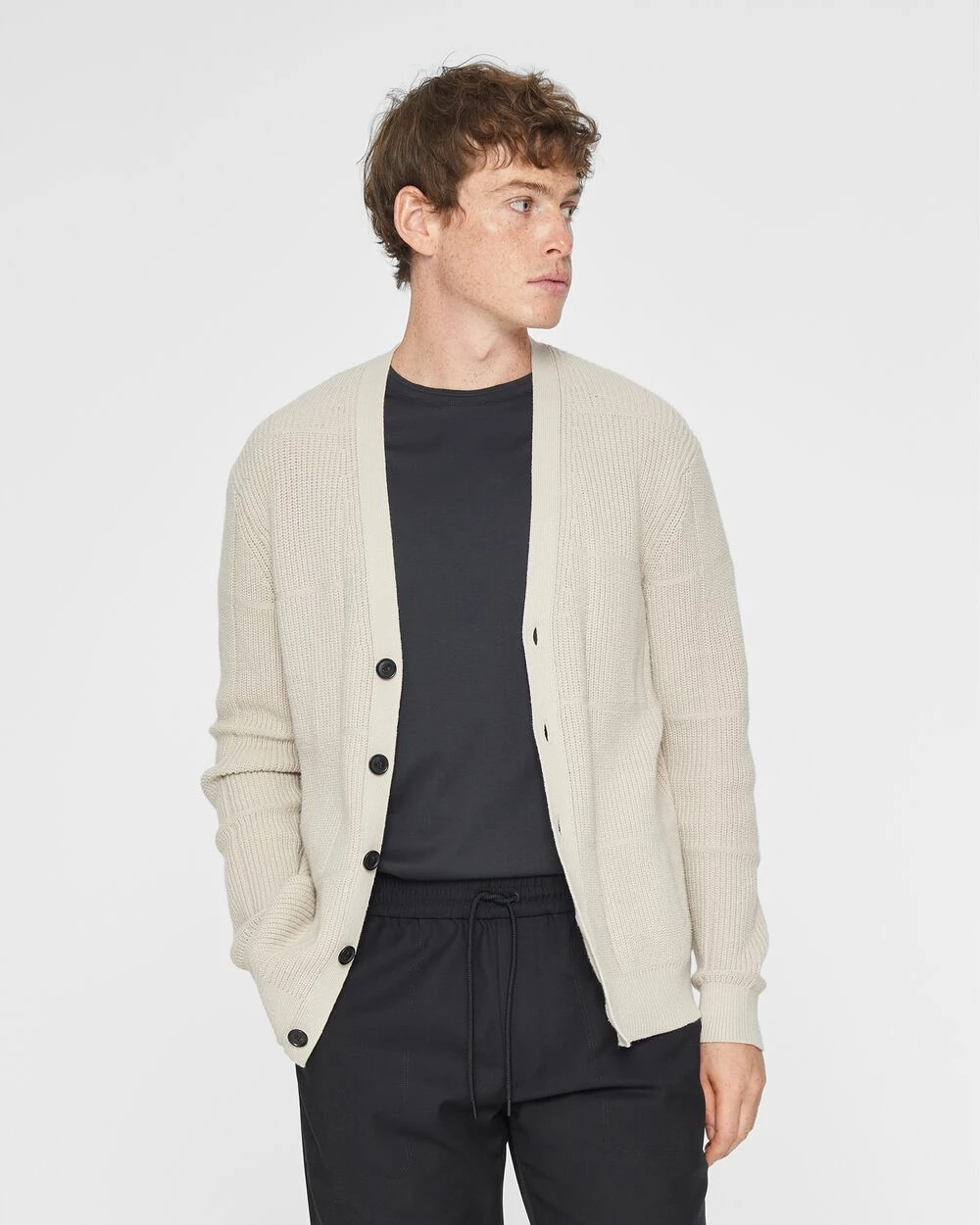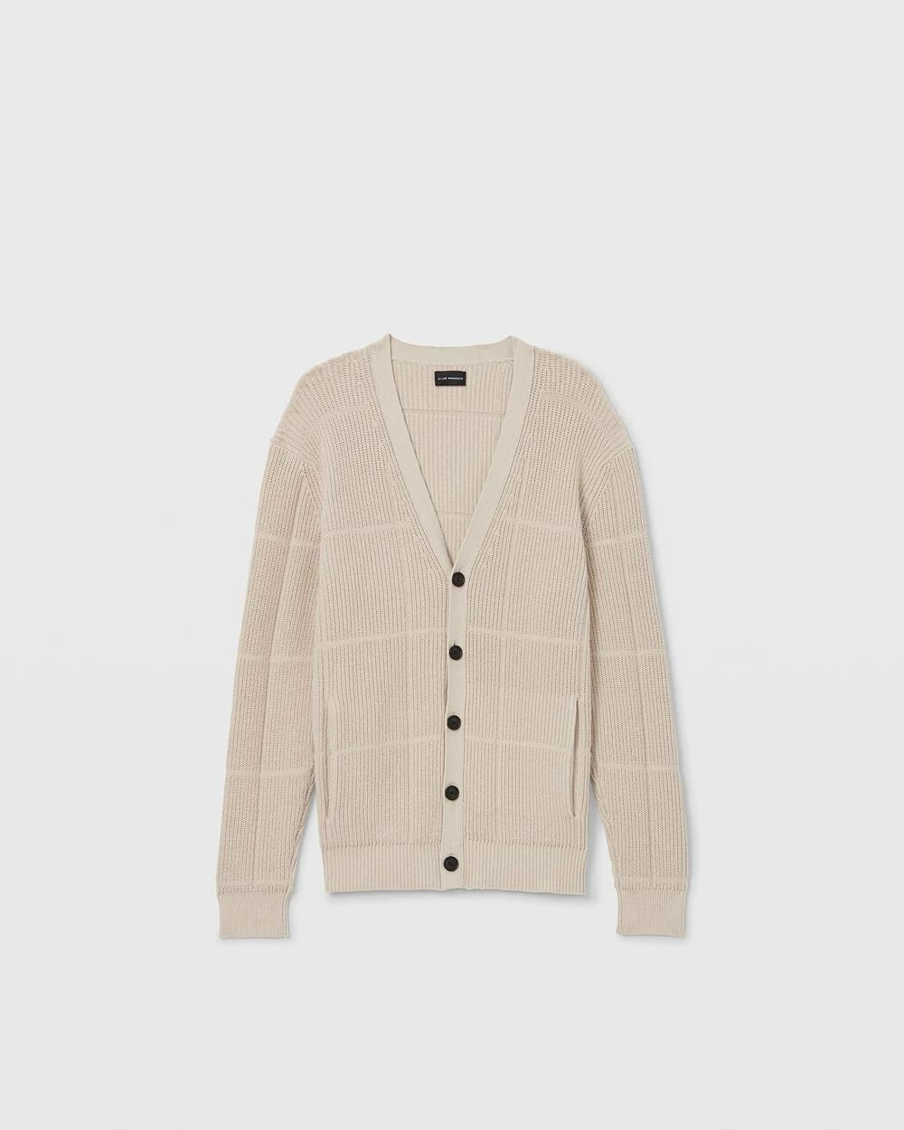 A classic cardigan with a contemporary feel, knit in a tonal grid pattern for added texture. Cut for a straight fit and designed with side pockets.