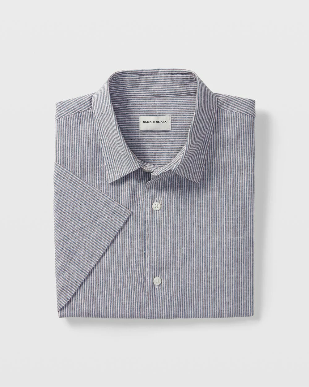 Warm-weather essential. A slim-fit shirt gets a relaxed feel, thanks to short sleeves and a two-tone striped print. In a breathable linen-cotton blend.