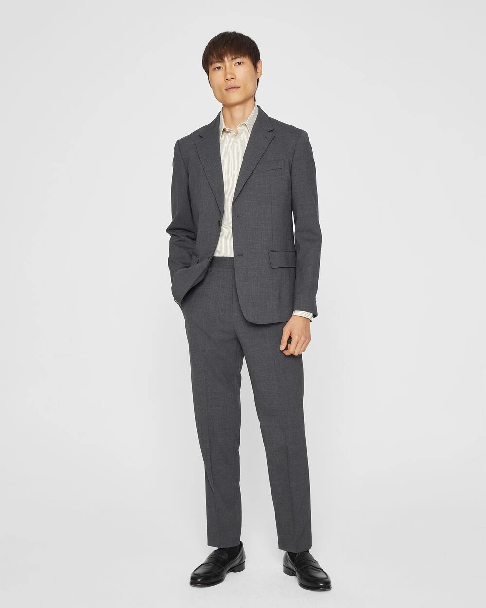 A pair of modern suit pants tailored for a polished, slim fit. Made from wool woven with just a hint of stretch for your every move. Wear solo or pair with our Signature Suiting Blazer for the ideal uniform.