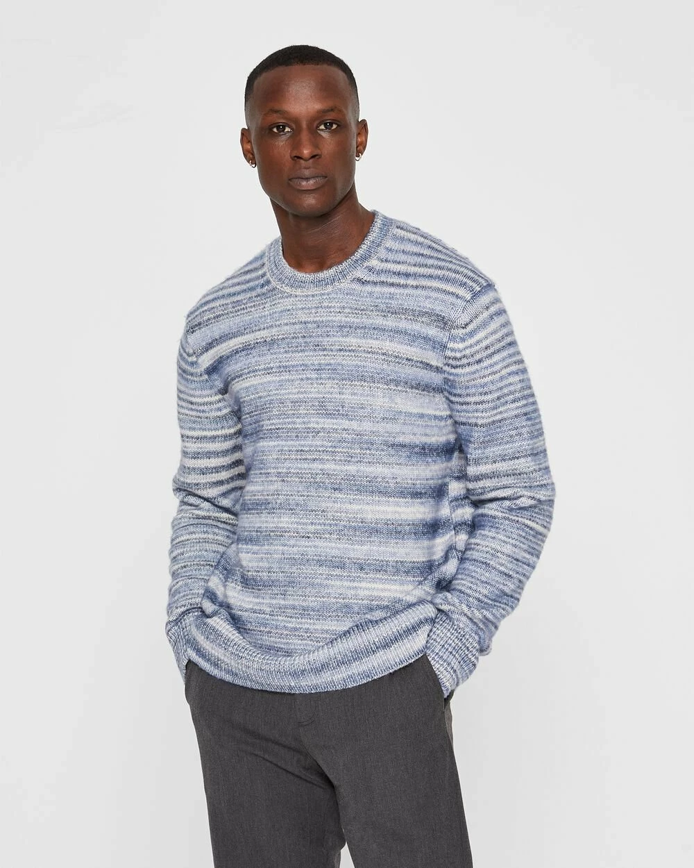Your go-to crew in a warm, comfortable cotton-wool-blend fabric for the oncoming cold front. This classicβs been taken up a notch with a space-dyed effect for visual interest.