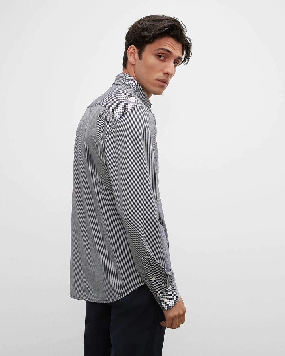 Comfort is key. We took the look of a dress shirt and combined it with the comfort of a cozy knit to get this versatile striped button-down shirt that’s sure to be your new go-to. Soft and stretchy but still sleek for wear-anywhere potential.