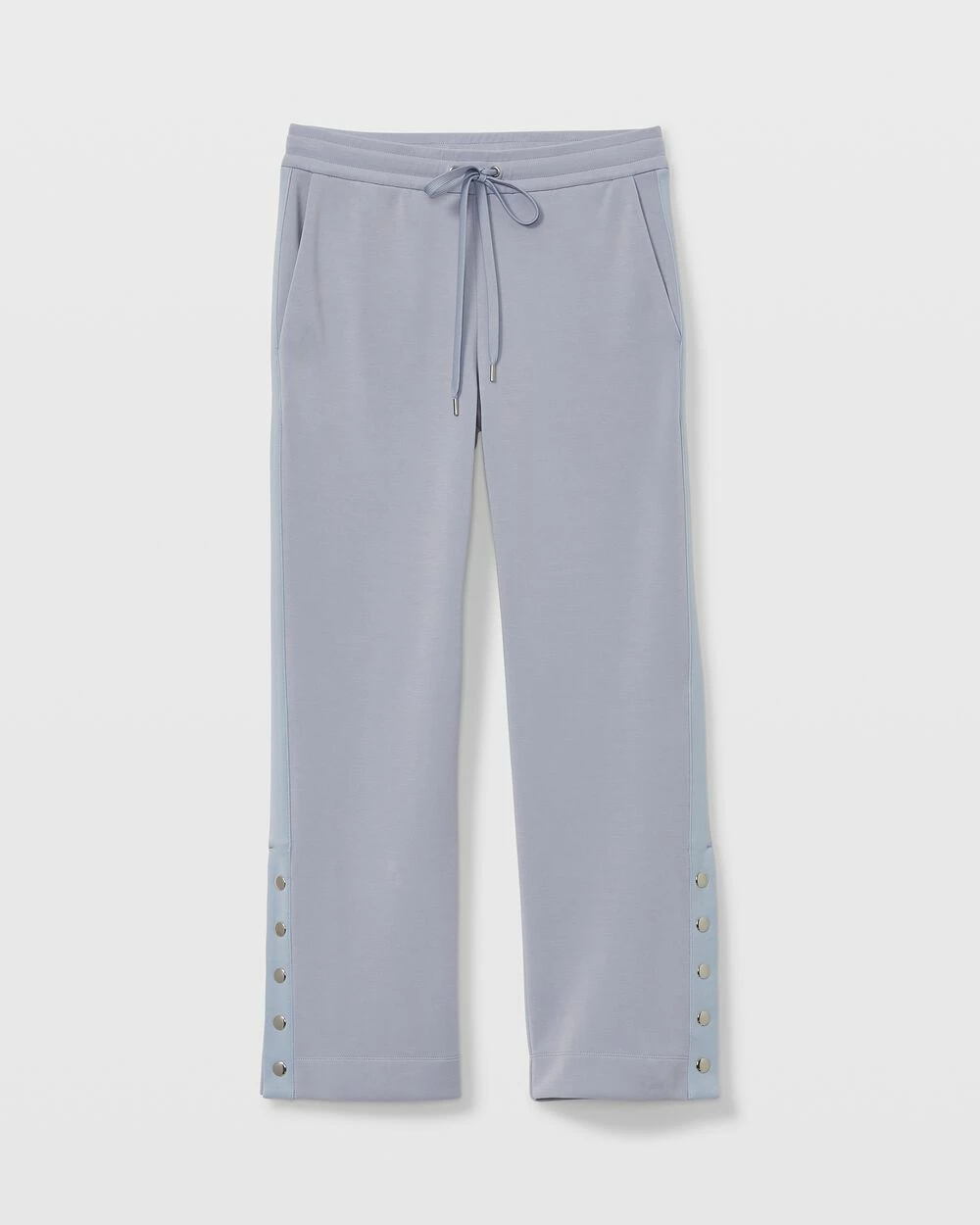 Keep it casual. These seemingly streamlined drawstring pants blur the lines between cozy and chic with a soft, stretchy fabric punctuated by metal snaps on the sides. Pair with our Snap Mockneck Sweatshirt for a monochromatic moment.