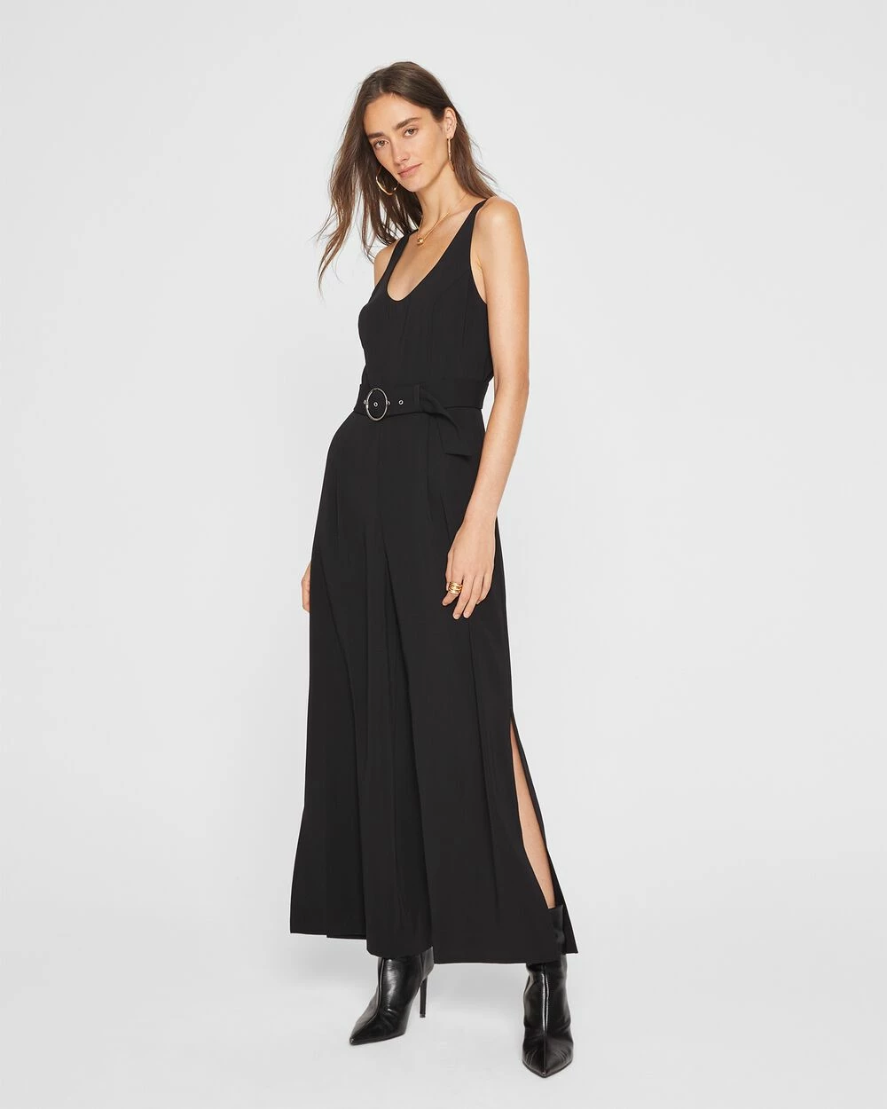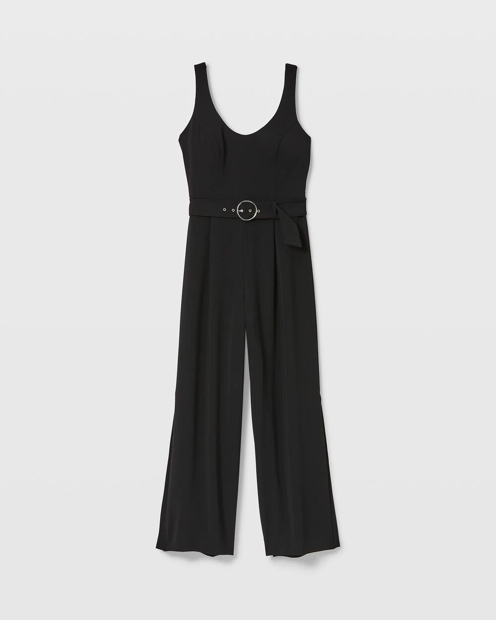 An easy, elegant jumpsuit for your next outing. Fit for nearly every occasion with a comfortable fabric, streamlined fit, and a belted waist that ties it all together. Made with recycled polyester. By turning industrial waste and post-consumer waste into new product, we are repurposing plastic and reducing our dependence on virgin petroleum-based materials.