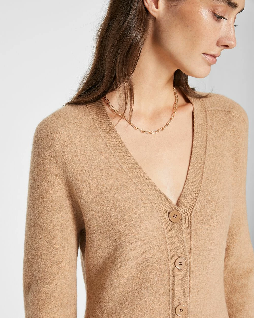 - Rib-knit V-neck, cuffs, and hem; long sleeves