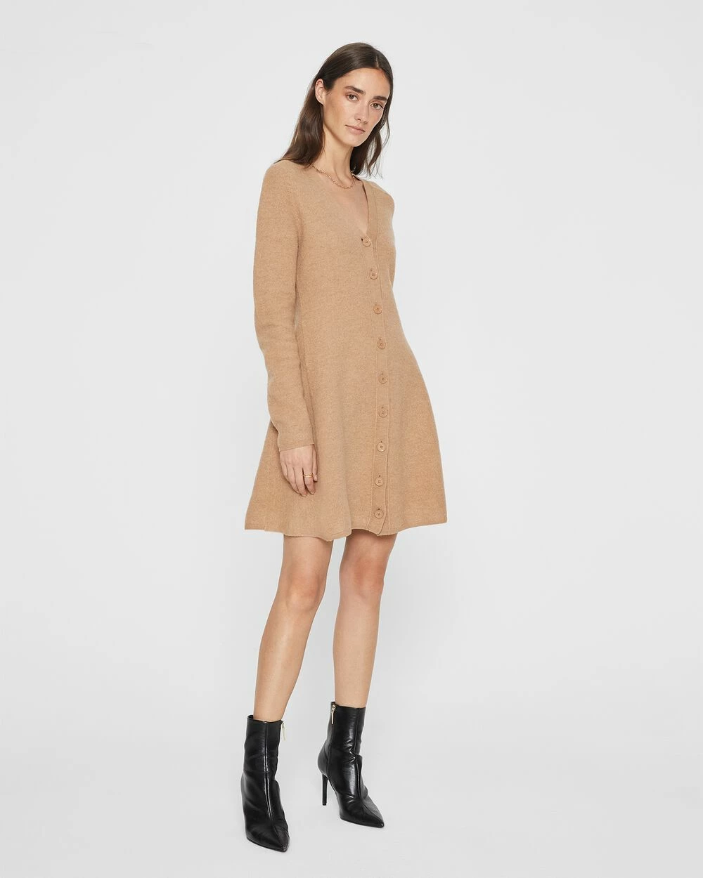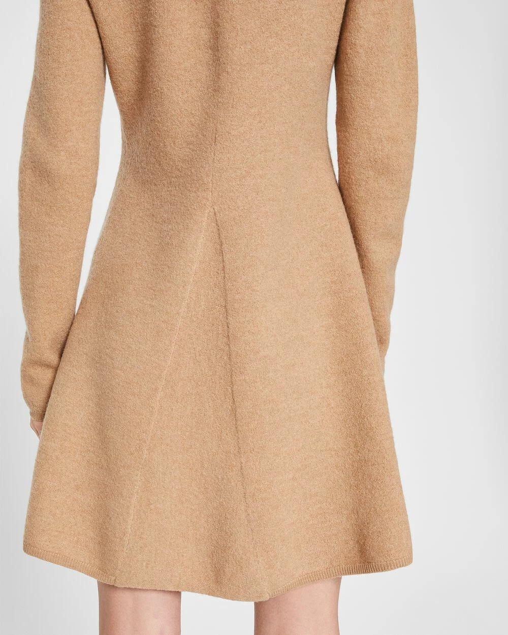 Neutral colorways and a flattering A-line silhouette make this knit wool dress a perfect seasonal choice. This cozy number looks amazing with everything from chic ankle boots to low-top sneakers.