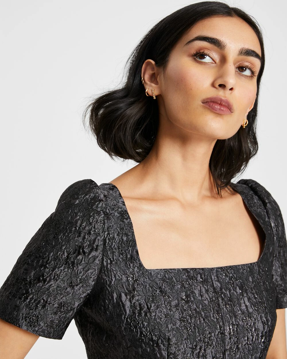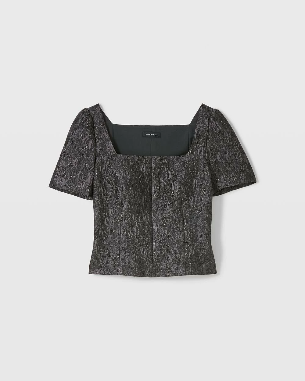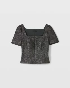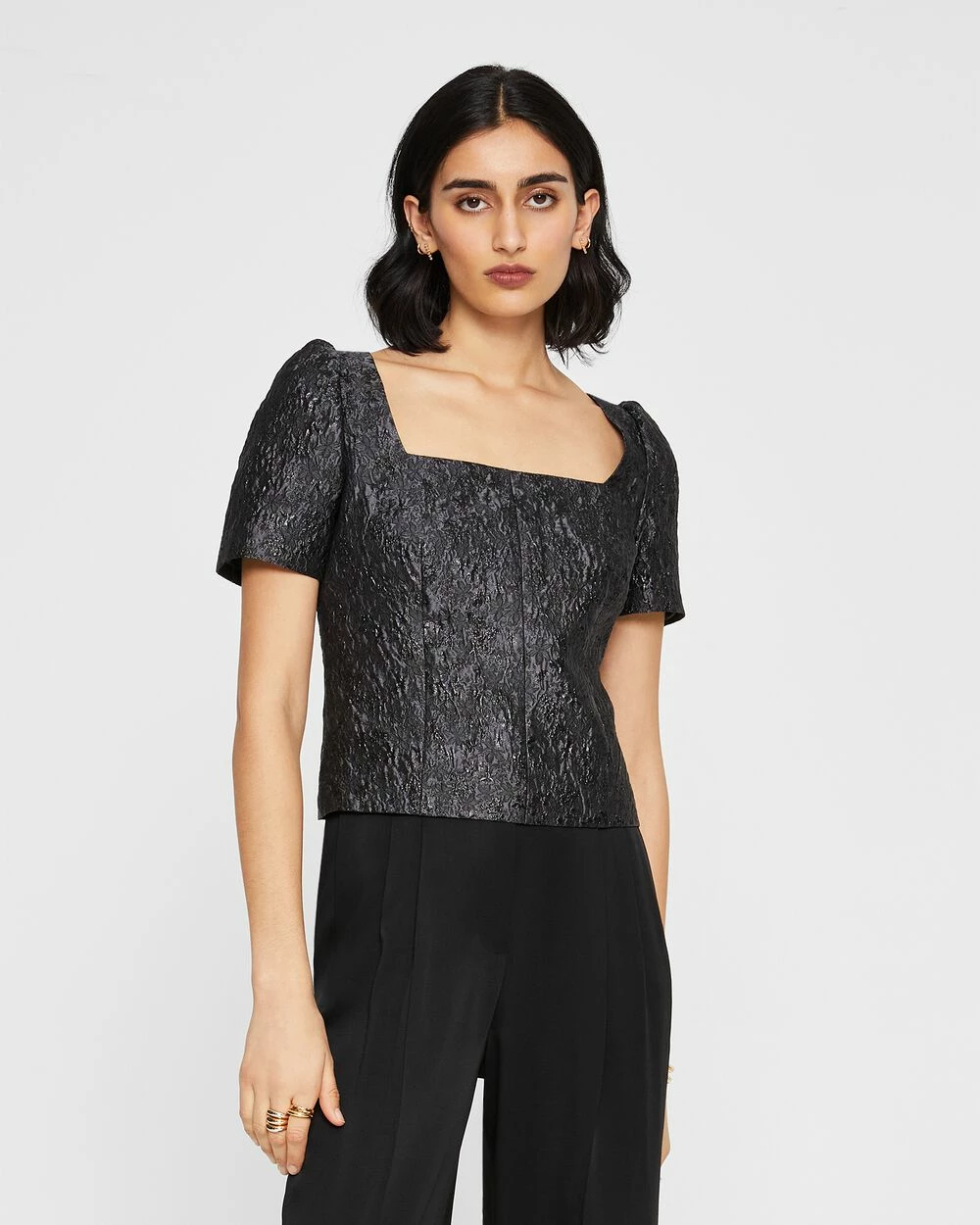 Get ready to fall in love. A rich brocade fabric takes this puff-sleeve blouse to the next level. Beautiful florals work alongside a boxy, cropped silhouette to create a timeless, feminine feel. Pair it with the matching Brocade Mini Skirt. Lined with recycled polyester. By turning industrial waste and post-consumer waste into new product, we are repurposing plastic and reducing our dependence on virgin petroleum-based materials.