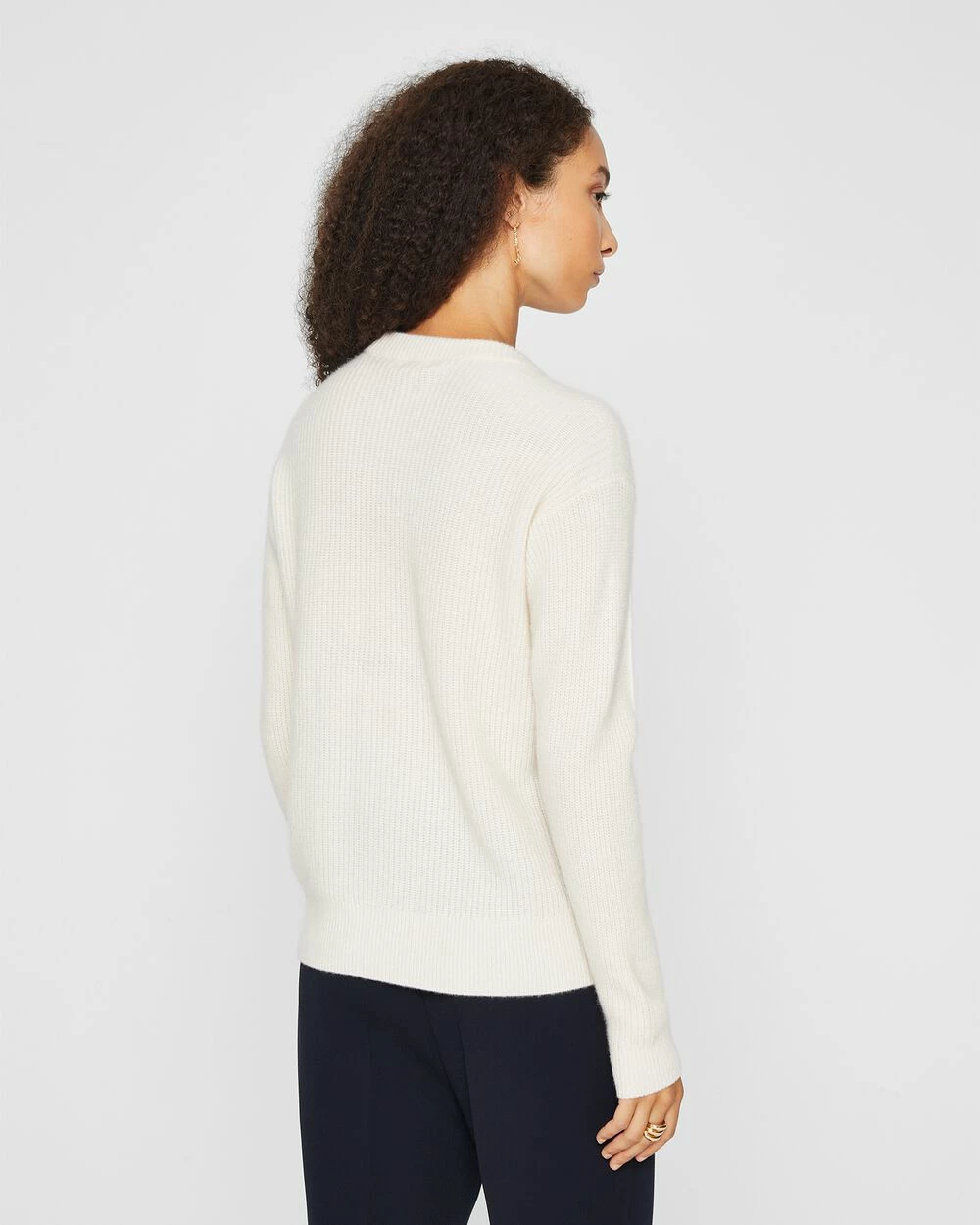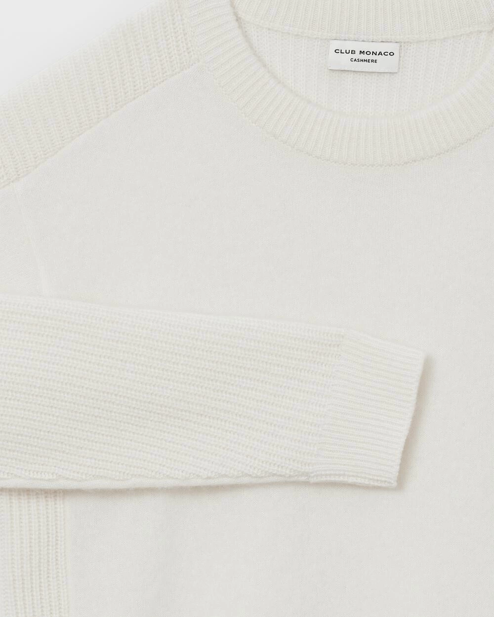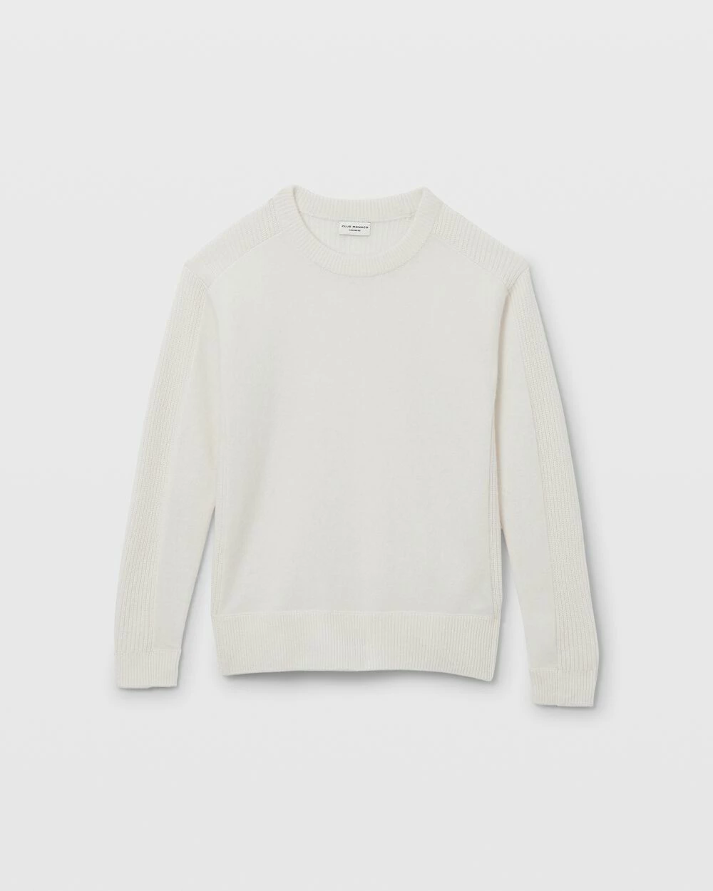 A sweater that dares to be different. Softly brushed cashmere with a super plush feel makes for a classic crewneck you’ll want to live in all season long. The textured back and sleeves and ribbed detailing add a bit of novelty to the overall look.