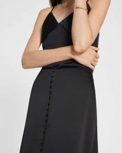 A button-and-loop placket updates this fluid A-line midi skirt, while a subtle center slit and polished fabrication make this your go-to for all occasions. Complete the look with the matching Tie Back Cami.