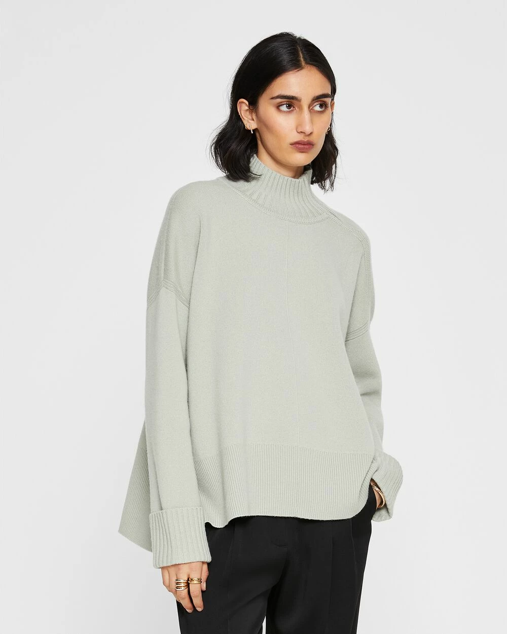 A double-knit blend of wool and cashmere pairs with a zipped neckline to elevate the look of a classic turtleneck sweater. We gave ours slits at the hem for a little extra movement making this one of the comfiest (and coziest) in our lineupβthank us later.