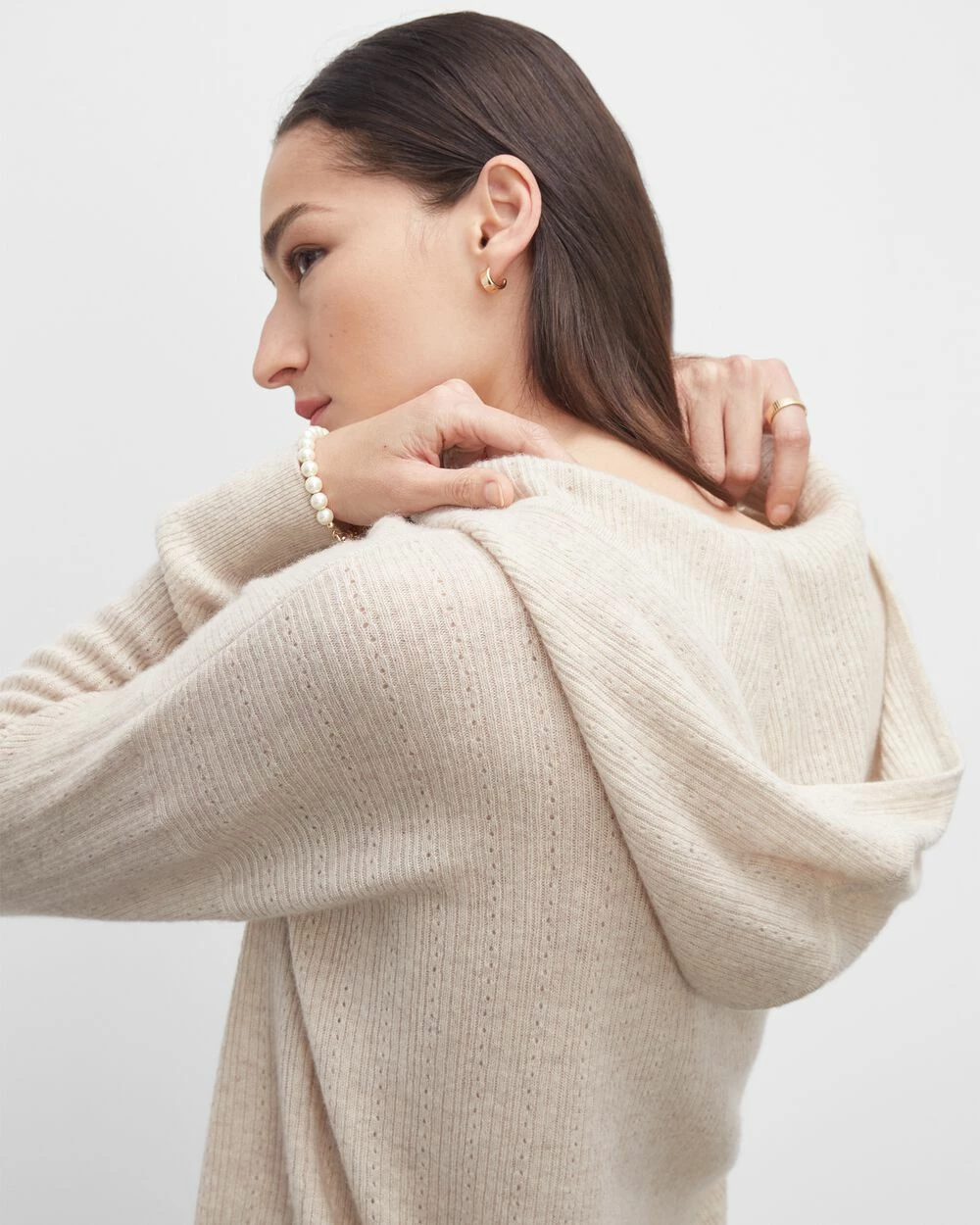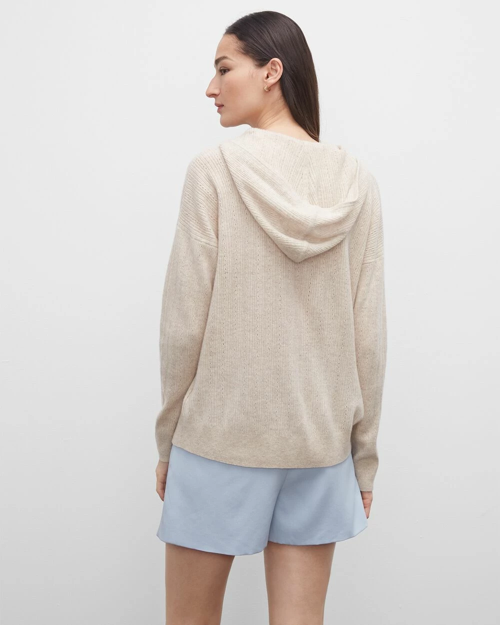 No limits. We’ve upgraded the traditional hoodie in our signature 100% cashmere and pretty pointelle stitches for the ultimate all-seasons piece. Wear it as-is in the warmer months and layer it for the rest.