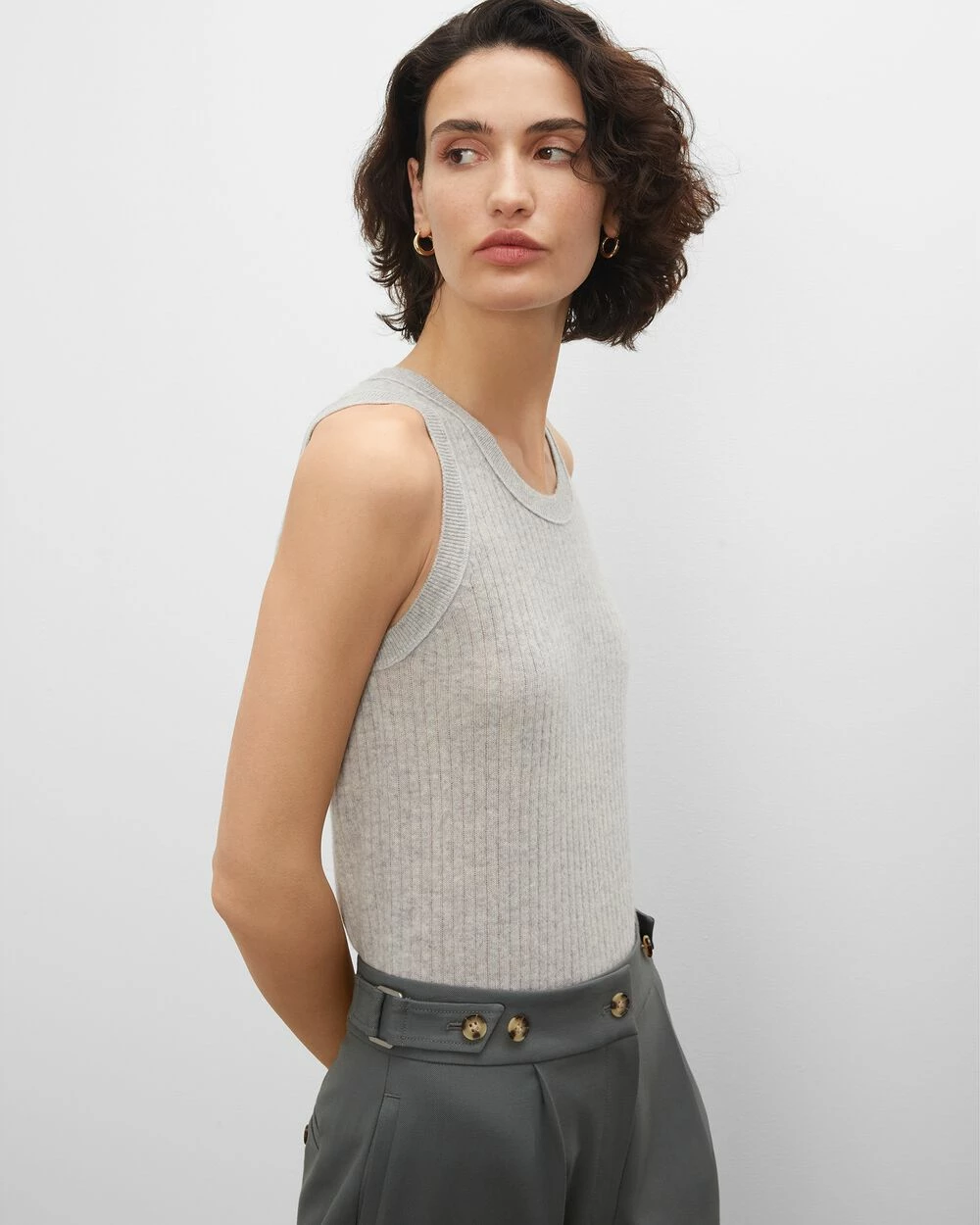 Call dibs on this one. Our rib-knit shell provides a very versatile addition to your wardrobe. Made from 100% cashmere for a soft, lightweight feel that layers like a dreamβall-year round. Lovely on its own, chic over a tee, and super sleek under your favorite blazer.