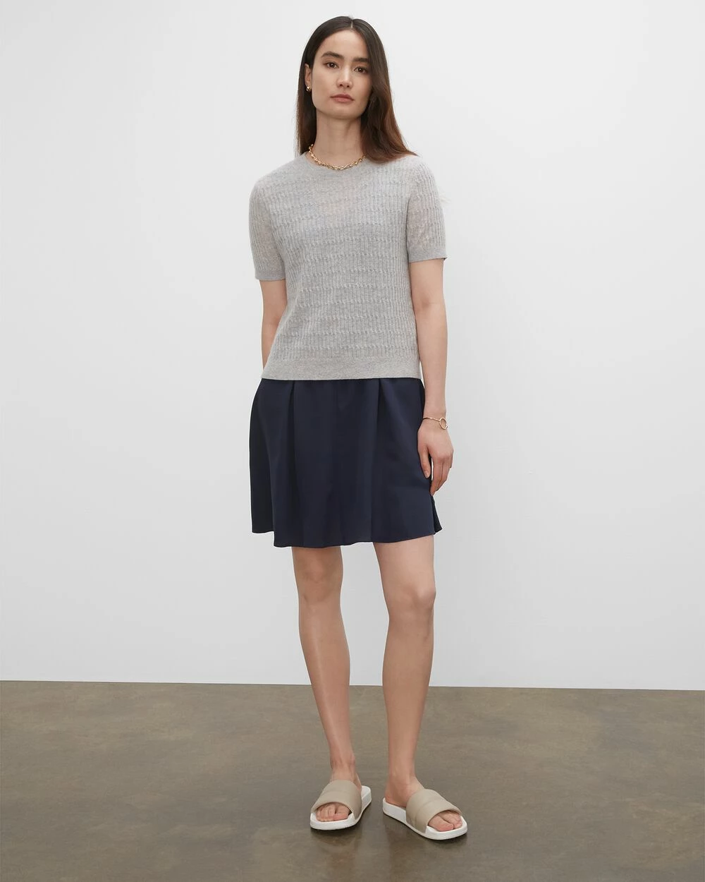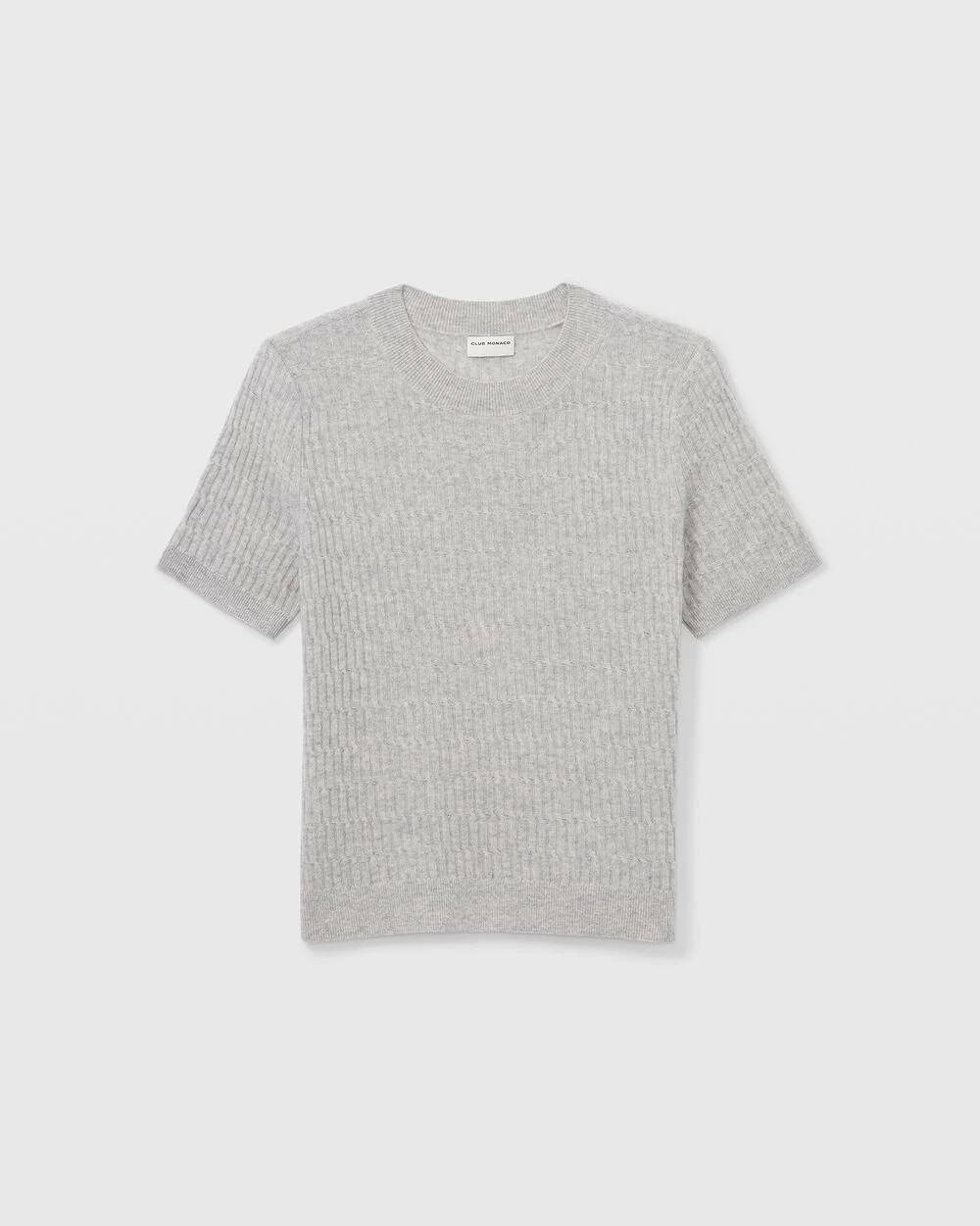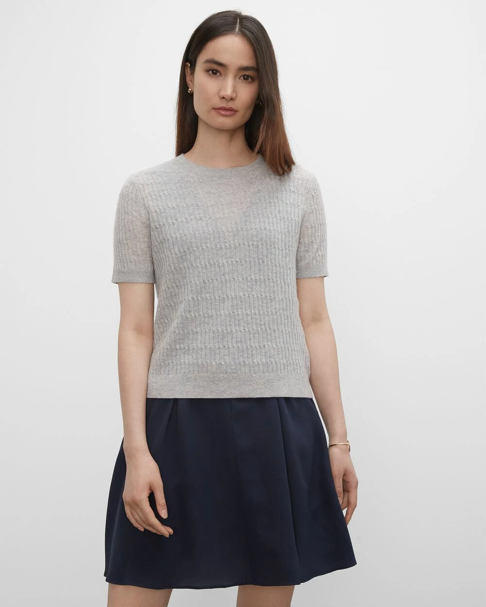 Easy tee meets refined knit. This classic crewneck short-sleeve top is reinvented in Club-favorite cashmere with elevated stitching throughout the body. And just like your favorite tee, this sleek staple is designed to dress up or down, all year long.
