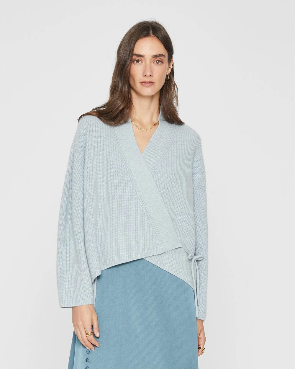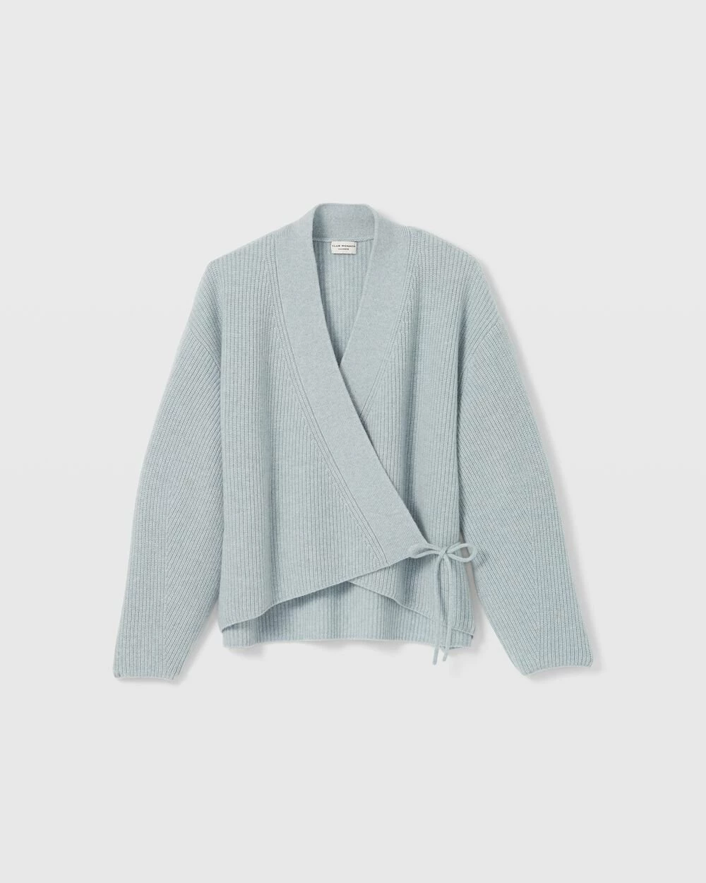 A little tied up. The perfect fall layer, this cozy cardigan features a crossover wrap front and a slightly cropped length that looks amazing over high-waisted anything. Made from 100% ribbed cashmere.
