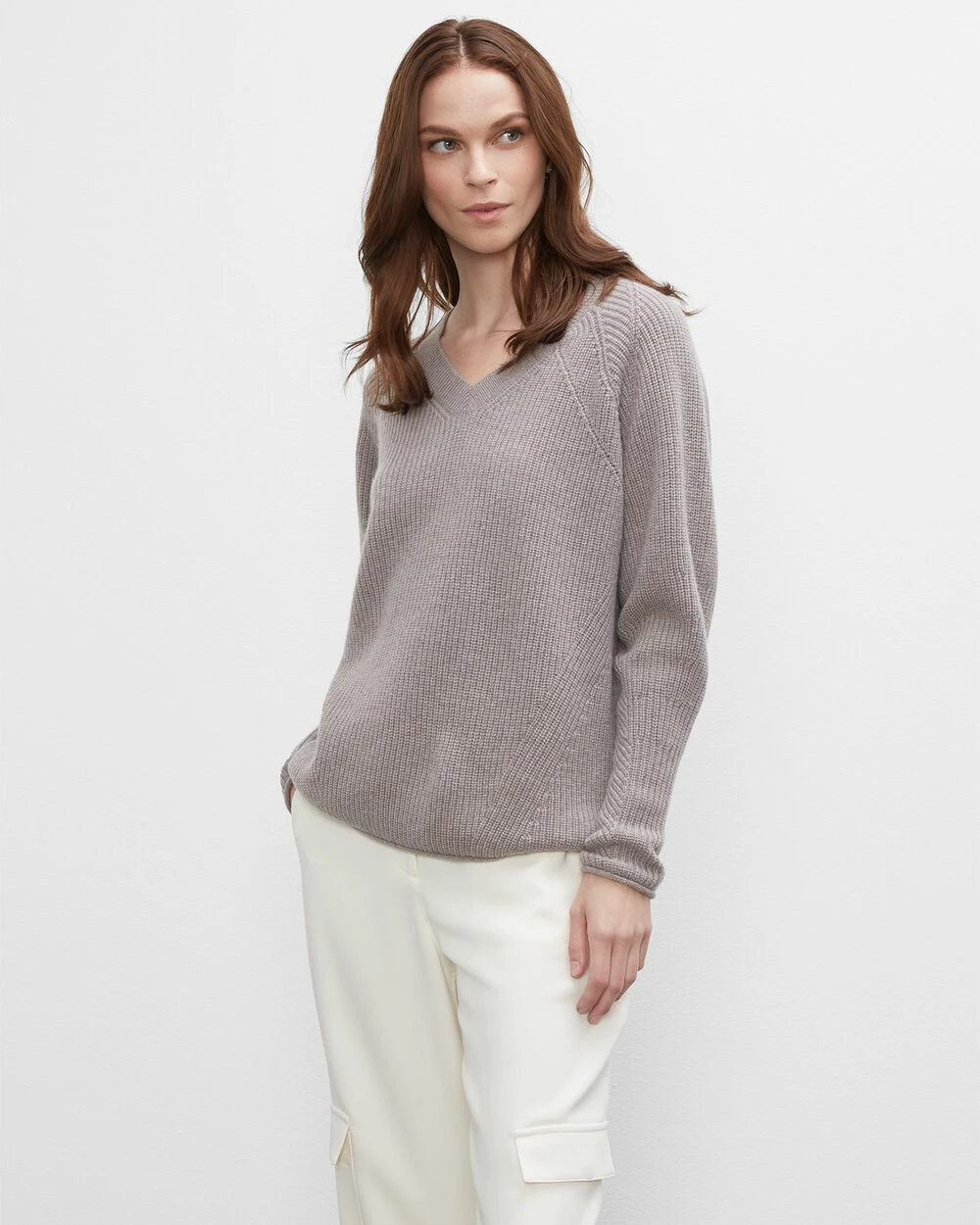 Layering at its most luxurious. A slightly slouchy cashmere sweater makes the transition between seasons something to actually look forward to. Wear this V-neck knit over our Drape Midi Skirt for a chic day-to-night look or throw over a turtleneck for relaxed refinement.