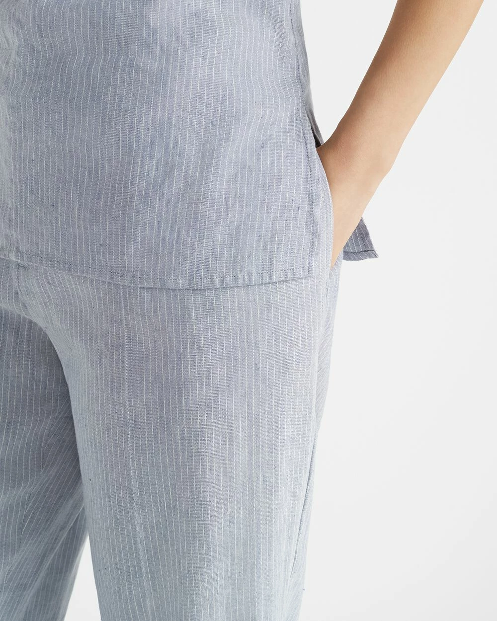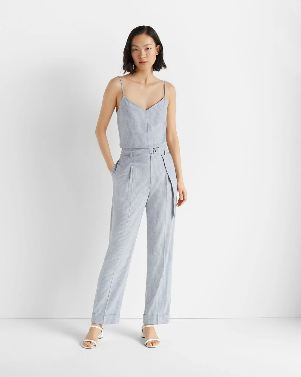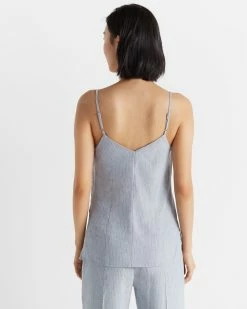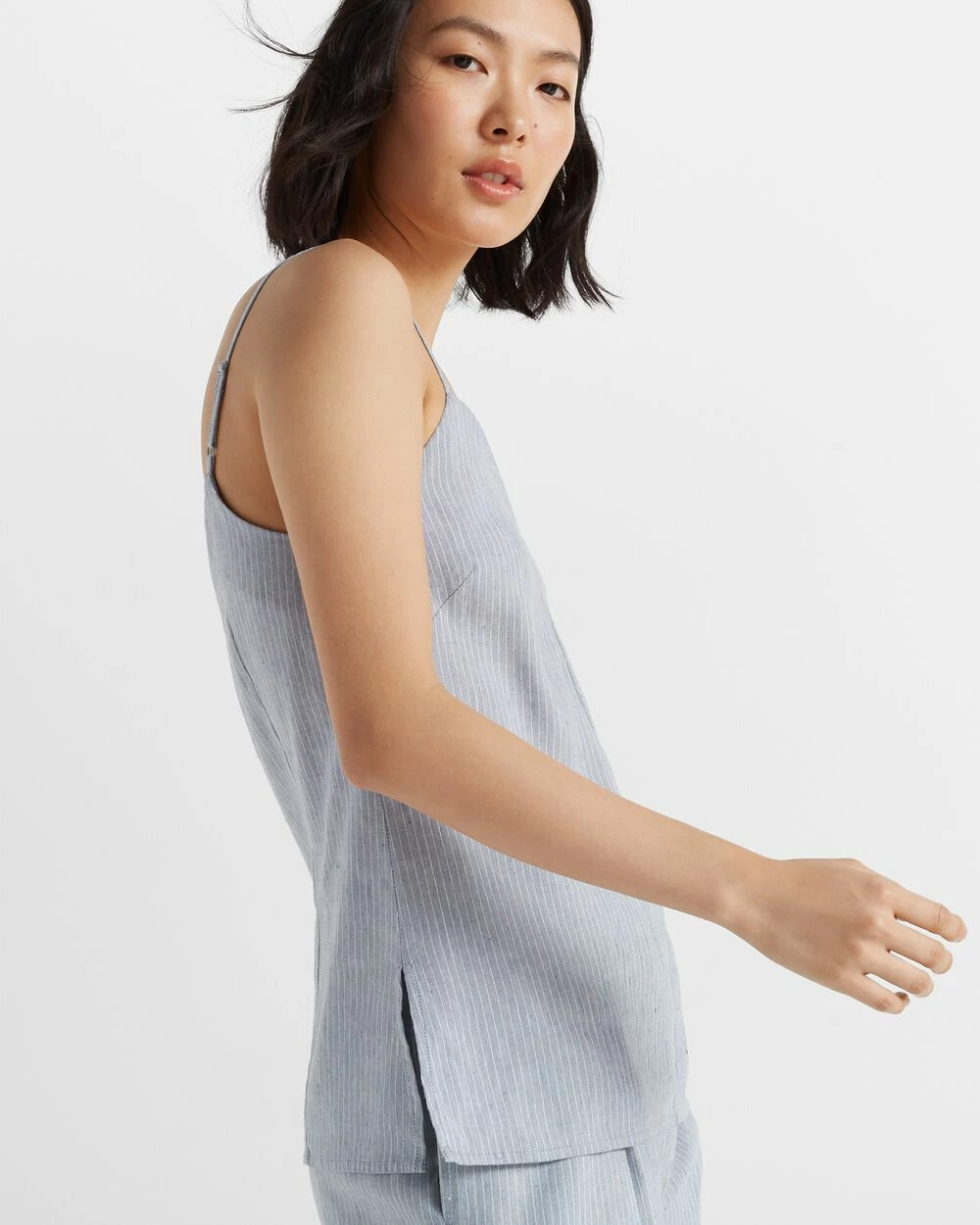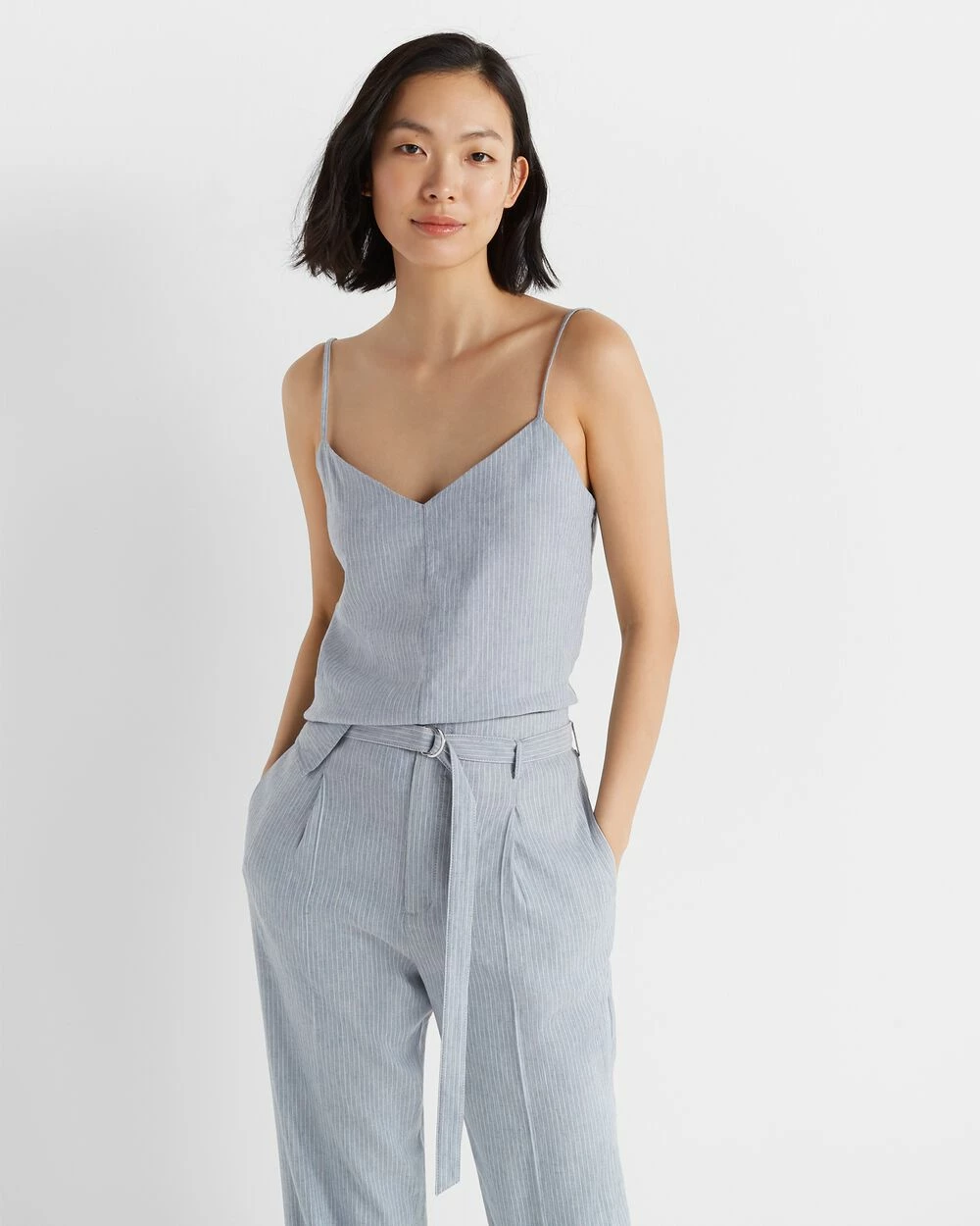Casually speaking. A linen-blend fabric lightens up a swingy V-neck camisole. For an airy alternative to a tee.