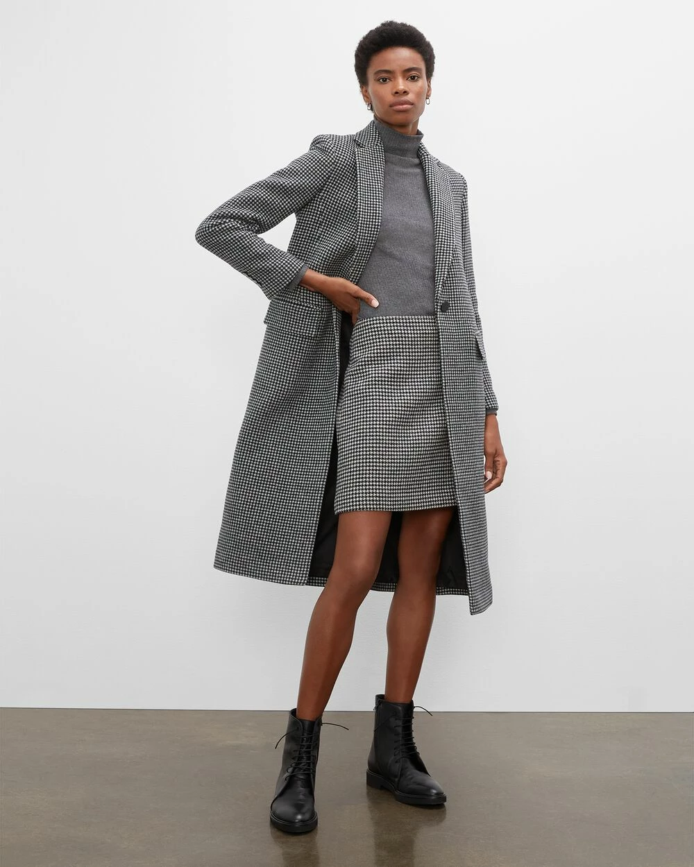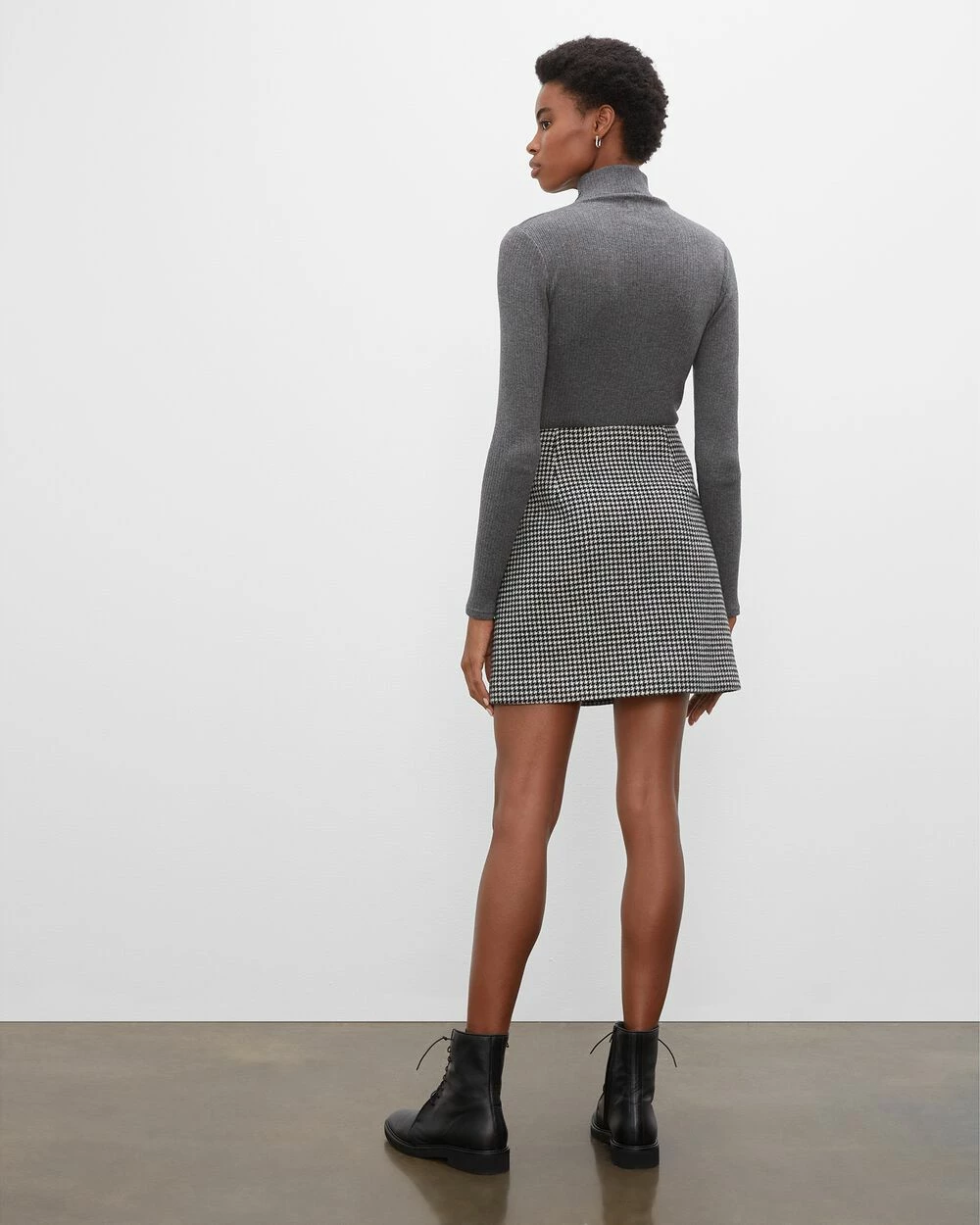 Rethinking the mini. Cold weather-friendly fabrics and a sleek A-line silhouette make our best-selling mini skirt feel modern. Super cute under a chunky sweater or a slim knit. Lined with recycled polyester. By turning industrial waste and post-consumer waste into new product, we are repurposing plastic and reducing our dependence on virgin petroleum-based materials.