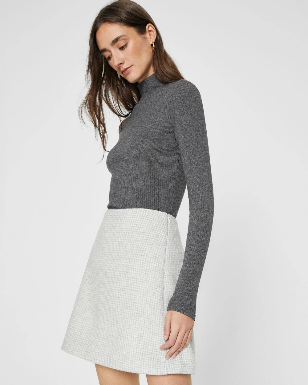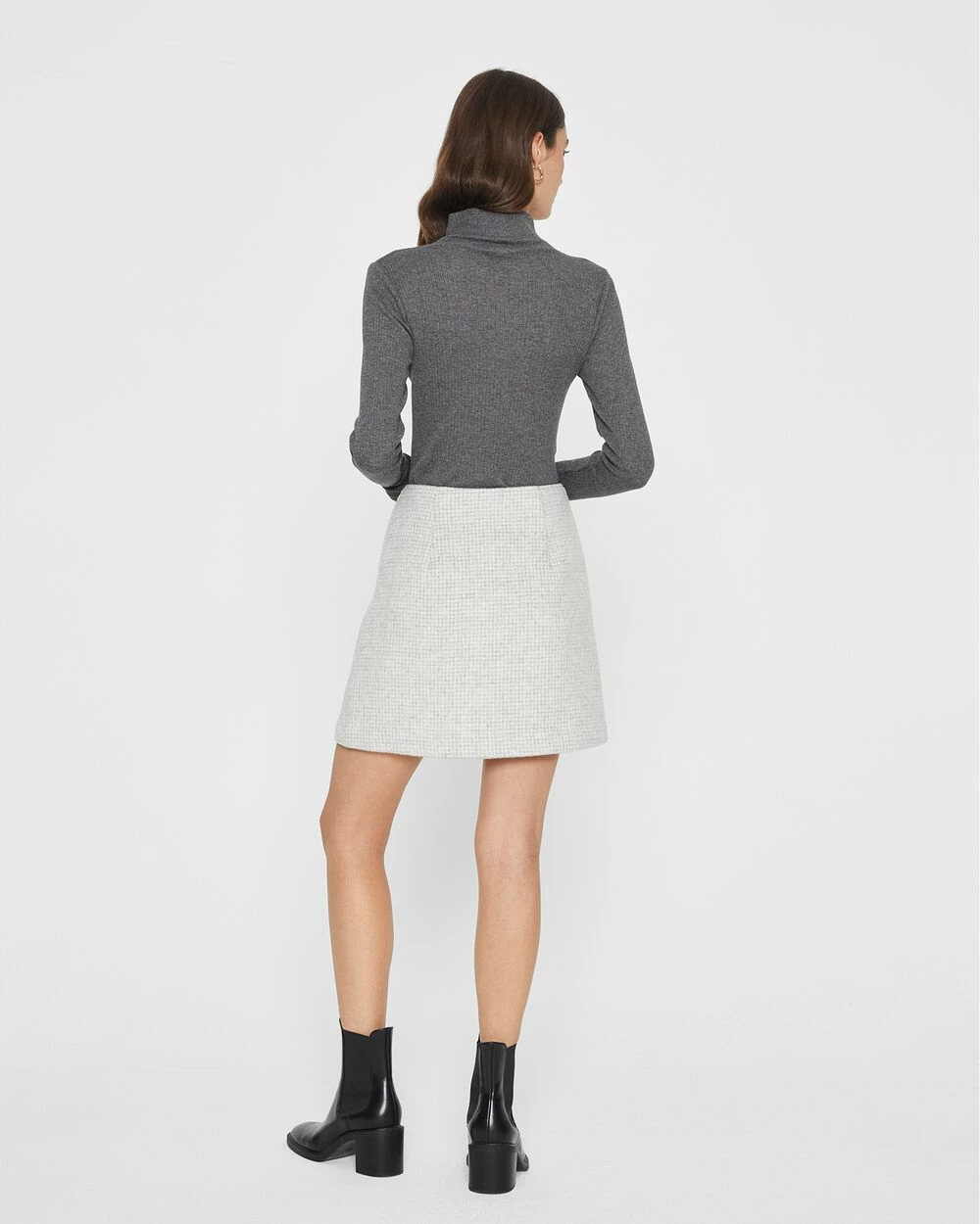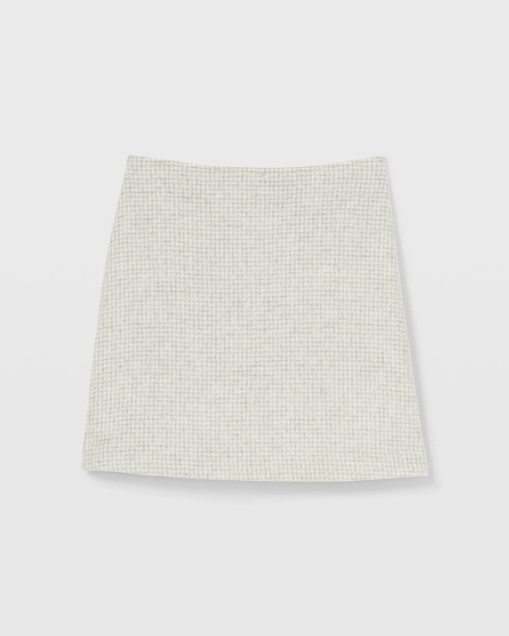 Rethinking the mini. Cold weather-friendly fabrics and a sleek A-line silhouette make our best-selling mini skirt feel modern. Super cute under a chunky sweater or a slim knit. Lined with recycled polyester. By turning industrial waste and post-consumer waste into new product, we are repurposing plastic and reducing our dependence on virgin petroleum-based materials.