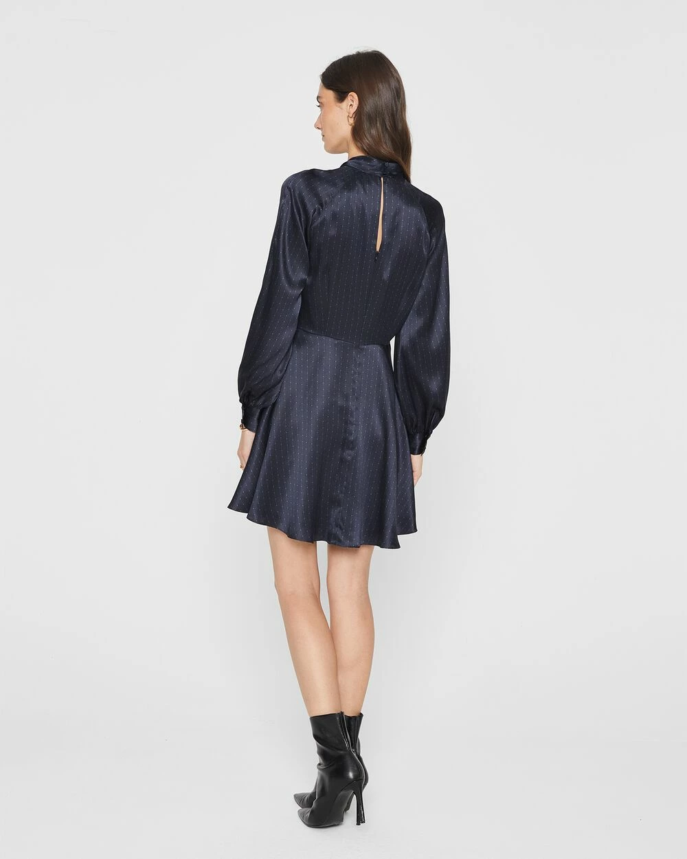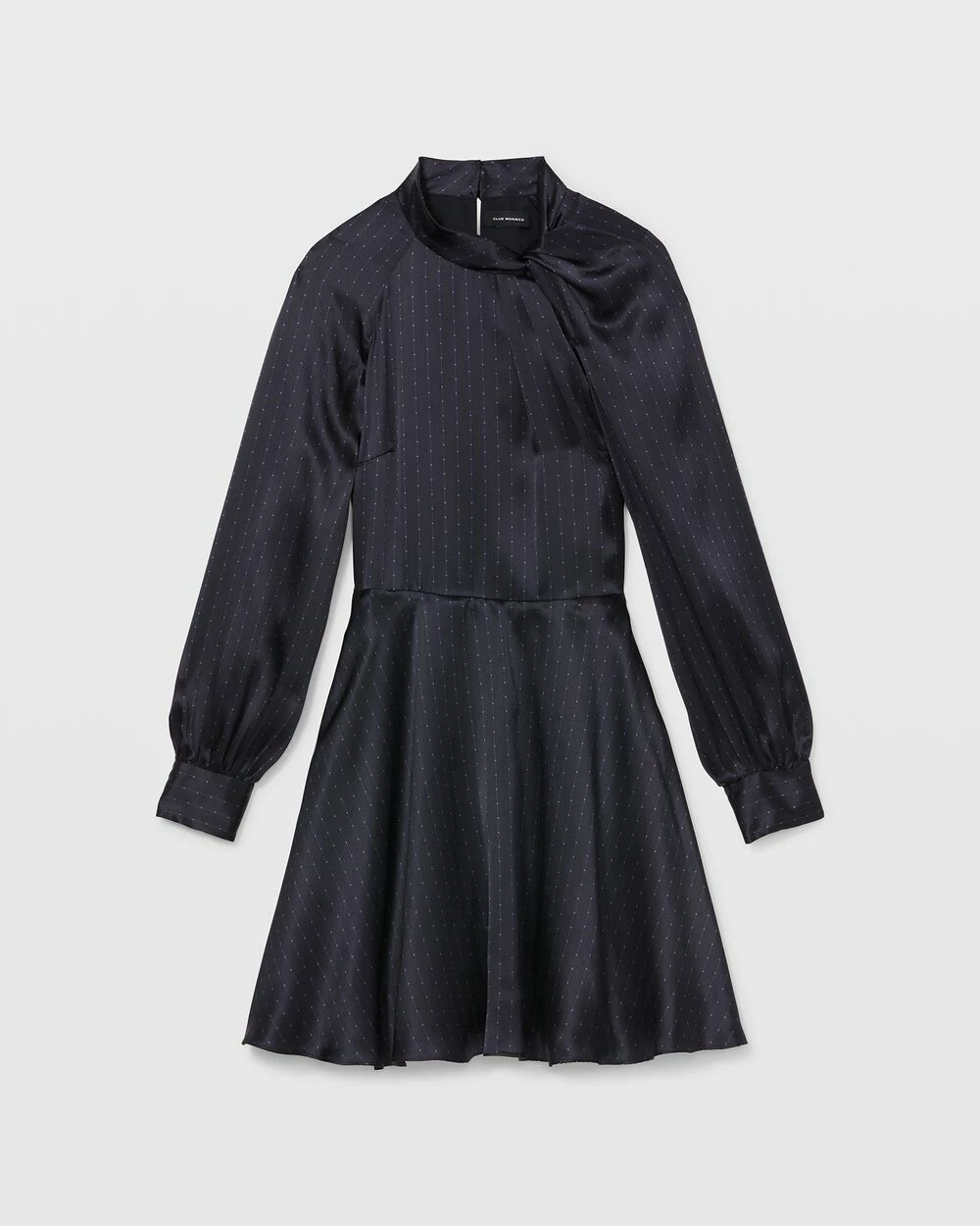 Cut from a elegant silk charmeuse, this long-sleeve mini dress is defined by a twisted mock neck and fluid drape. Throw on some kitten heels and a clutch for a night out.