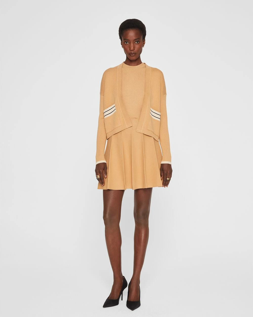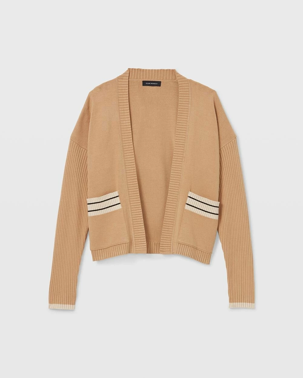 This comfy knit cardigan features a boxy silhouette with striped trim for a touch of contrast. Pretty perfect over everything from your best workwear to your weekend denim. Style tip: We love this one layered over our Directional Rib Shell.