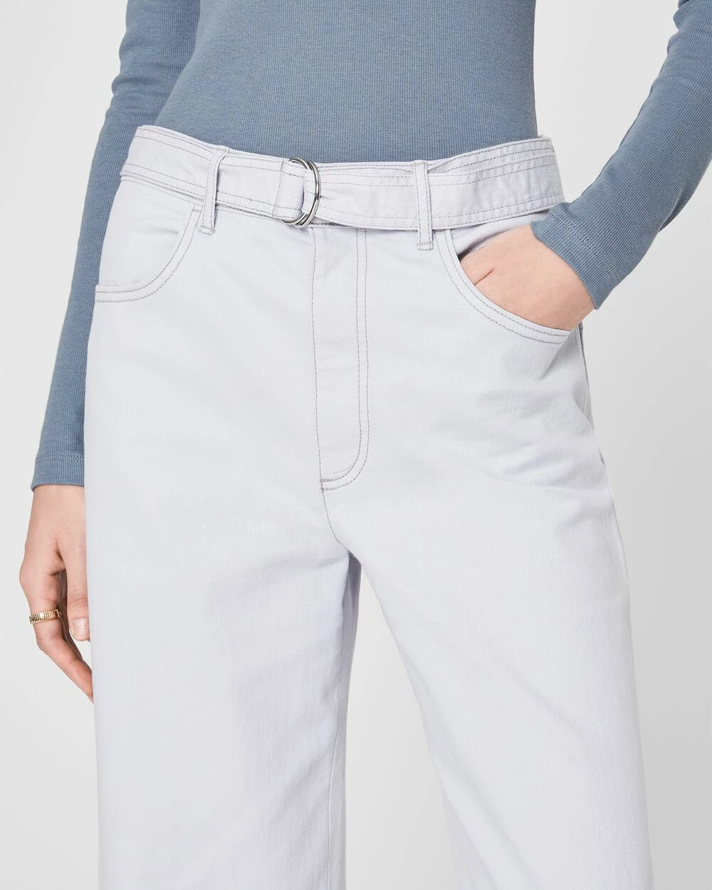 Modern utility. A pair of workwear-inspired pants gets a fresh update in a versatile neutral accented with contrast-colored stitching. The perfect complement to your favorite ankle boots.