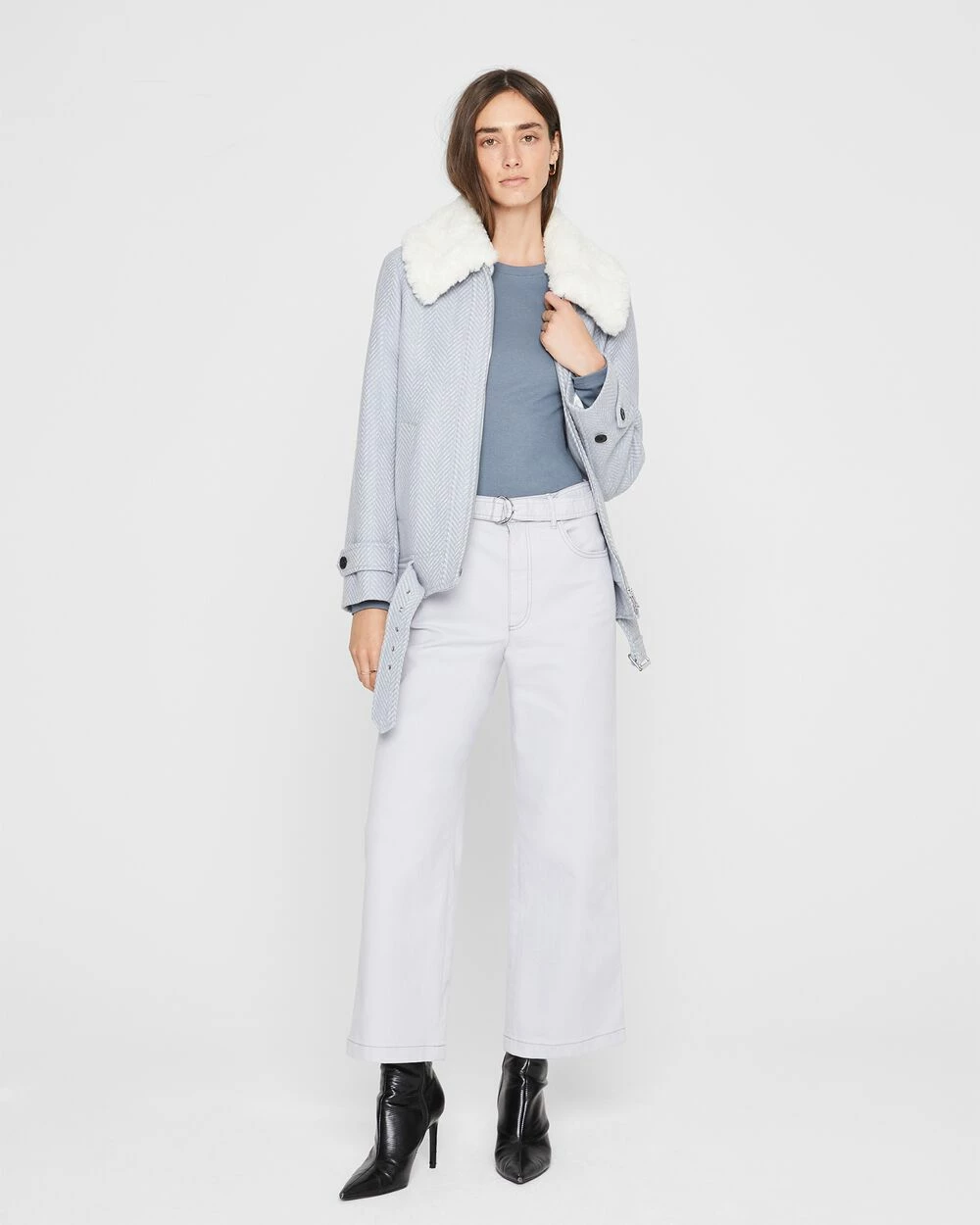 - Designed to sit at mid-waist with a slight wide-leg silhouette.