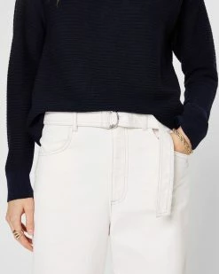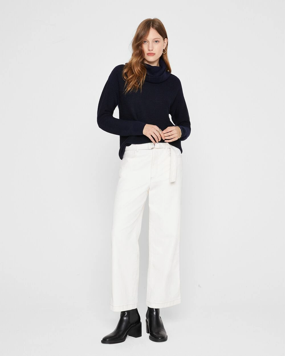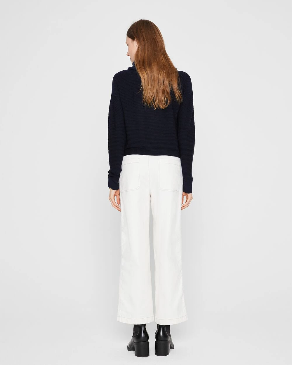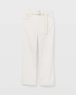 - Designed to sit at mid-waist with a slight wide-leg silhouette.