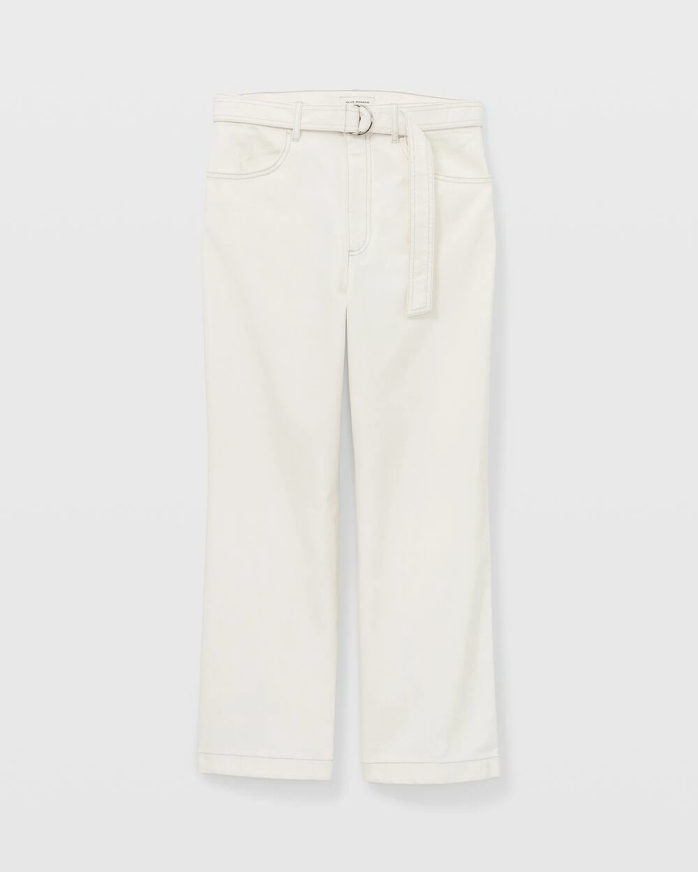 Modern utility. A pair of workwear-inspired pants gets a fresh update in a versatile neutral accented with contrast-colored stitching. The perfect complement to your favorite ankle boots.