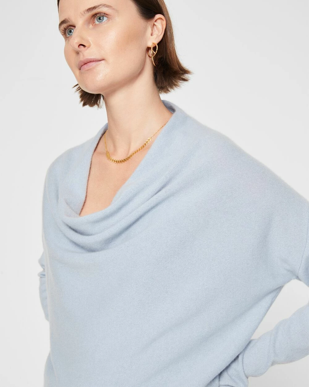 Understated elegance. A sophisticated cowl neck dresses up this otherwise-classic cashmere sweater. A relaxed silhouette and dropped shoulders keep it comfortable while fitted long sleeves give back some structure. Our recycled cashmere is spun from reclaimed cashmere remnants, for a piece that you can feel good in and feel even better about.