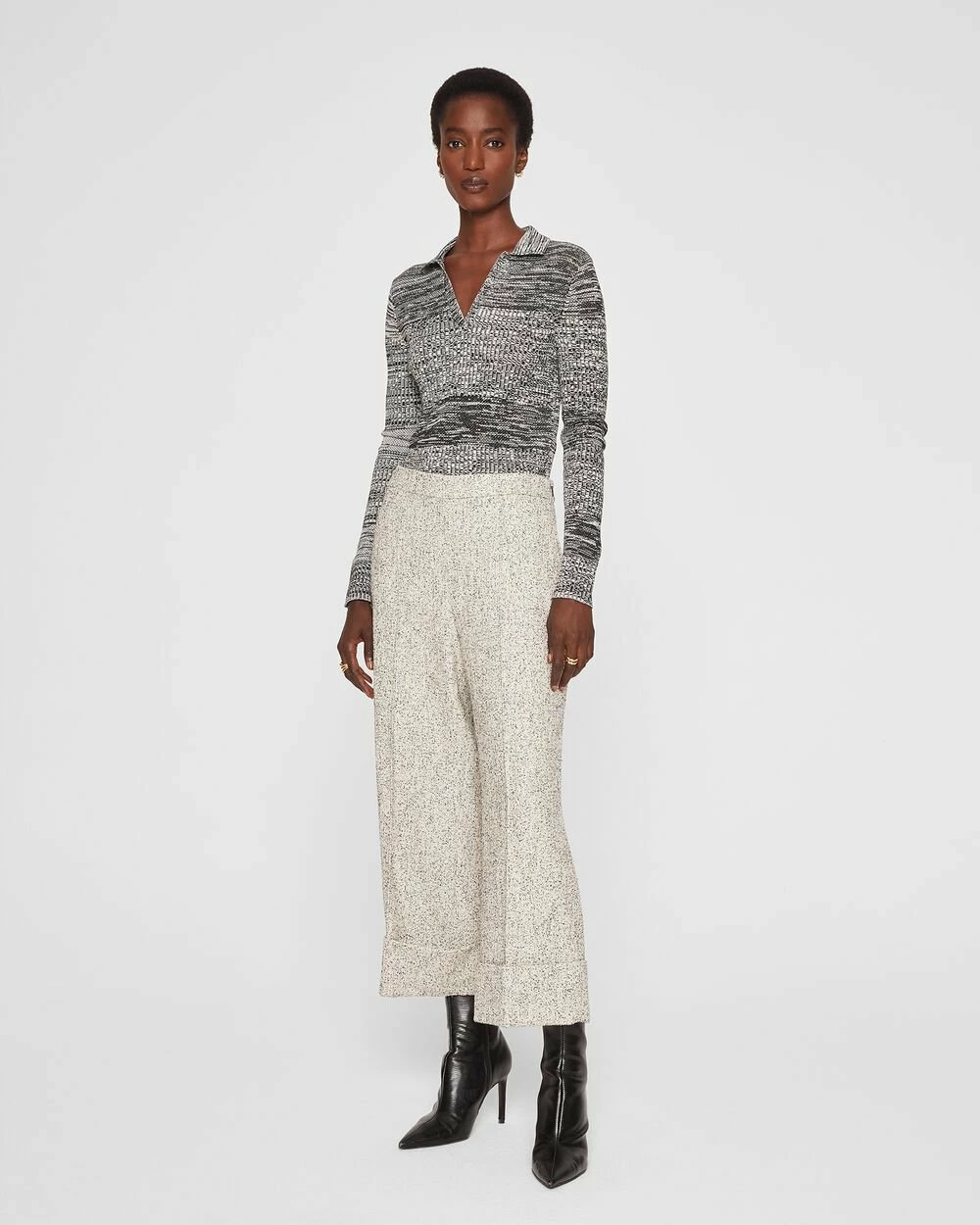 Your new workwear favorite. A classic cropped trouser, updated with sharp center creases and cuffed hems to ground all of your best blouses.