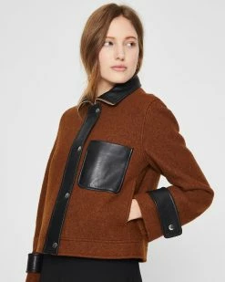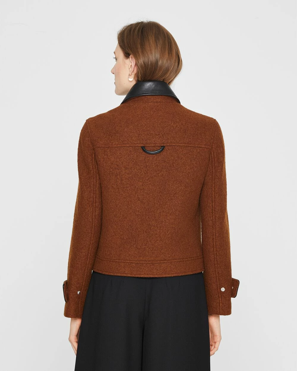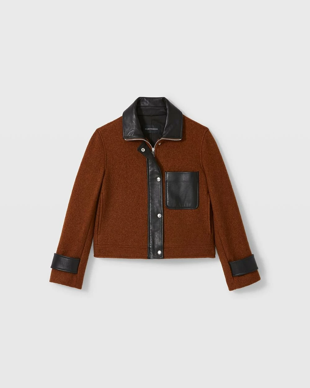 A winning combo. Textured wool and smooth leather work together to create a super-chic piece of outerwear. Our combo jacket is designed with a boxy, cropped silhouette that looks incredible over pleated midi skirts or softly distressed denim.