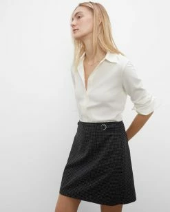 The perfect combination of tailored and textured. This tweedy mini skirt is distinguished by D-ring belted details at the waist and its classic silhouette. Match it back to our Borrem Blazer for a more traditional take on suiting. Made with recycled polyester. By turning industrial waste and post-consumer waste into new product, we are repurposing plastic and reducing our dependence on virgin petroleum-based materials.