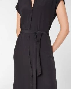 - Front button placket; removable sash at waist for the perfect fit